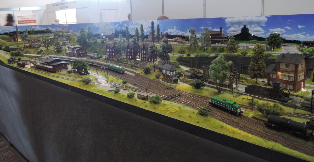 Poniżej zdjęcia z Targów HOBBY 2018. Wszystko to makiety H0, a tło jest stosowane również w tortach :) .