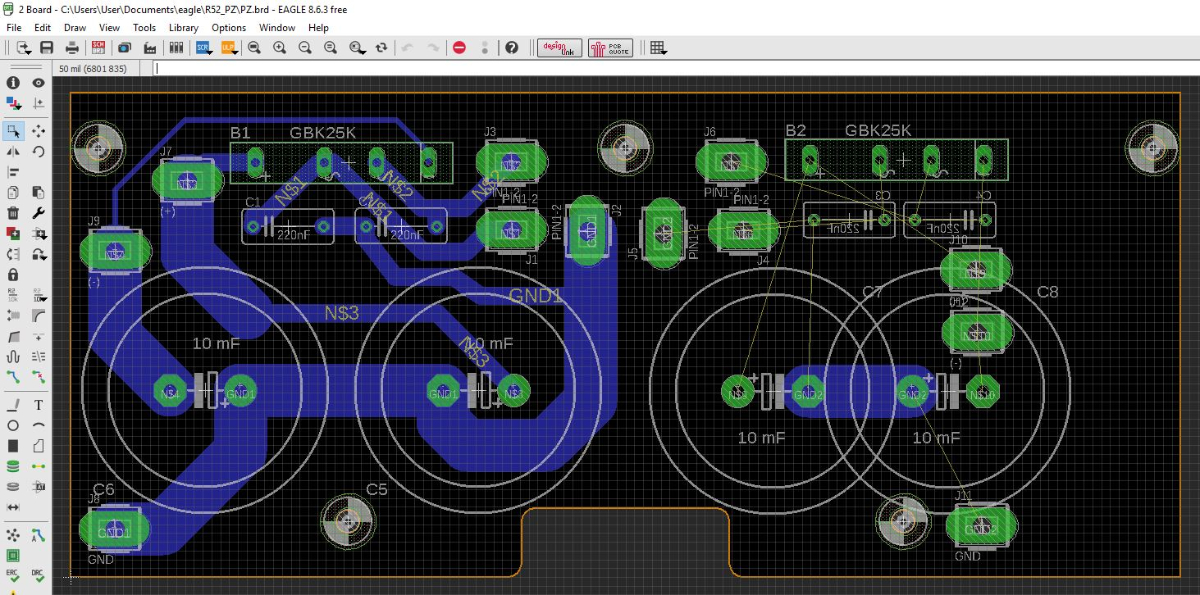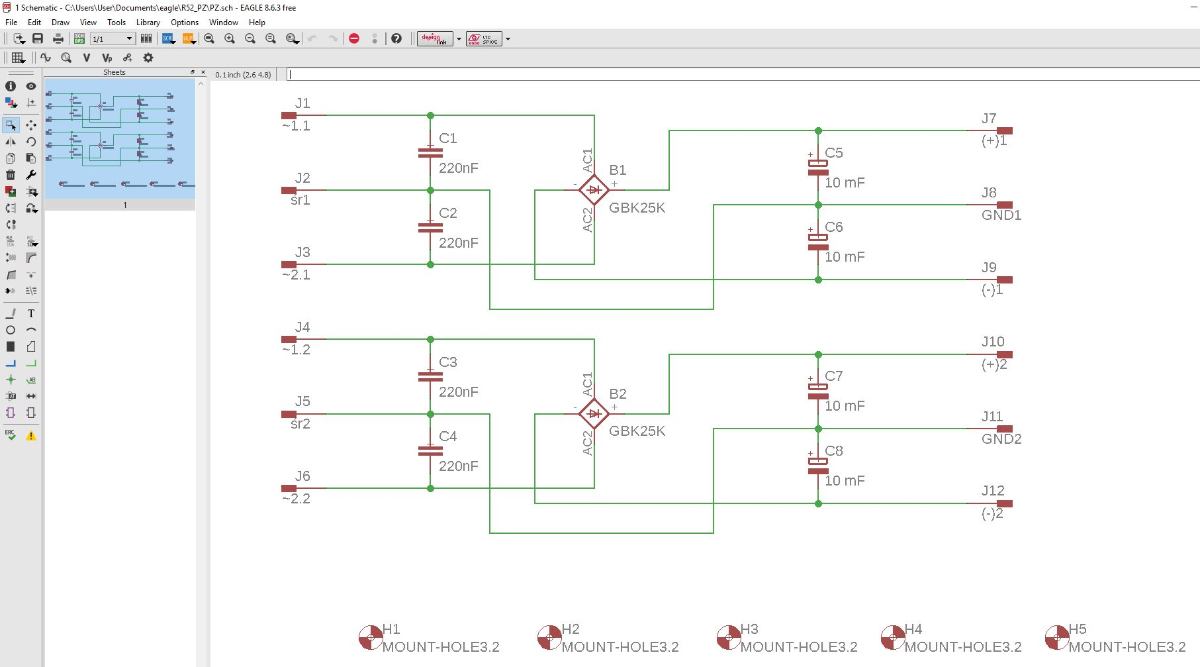 Przykładowe ekrany Eagla: Według mojej opinii, Eagle jest bardziej przyjazny użytkownikowi niż KiCad. Możliwe, że moja opinia jest zniekształcona pracą z wcześniejszymi programami (np. OrCAD i inne).