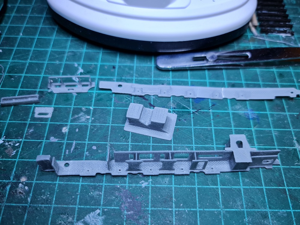 Wymyśliłem sobie że na jednym z torów przy obrotnicy będzie "umierał" na wpół pocięty Teigrek. Na razie mam ramę. Zastanawiam się czy próbować robić imitacje śrub i nitów na kotle i jeśli tak to jakim sposobem :? Moim zdaniem nie ma szans żeby takie elementy zrobić na drukarce FDM (nawet z głowicą 0,1mm).