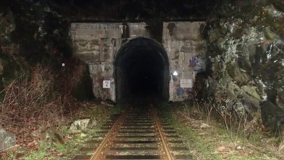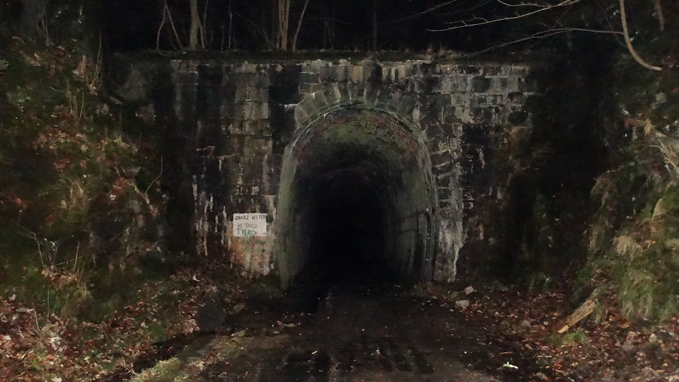 Oraz filmik z wjazdu szynobusu do tunelu.