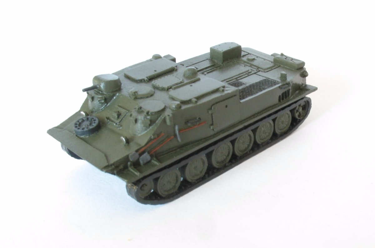 Radziecki transporter BTR 50 ( Broniotransporter ) a następnie licencyjny czechosłowacki – TOPAS. Pod koniec lat 50 Związek radziecki przekazał kilkanaście transporterów BTR odpłatnie do "testów" dla LWP i dla armii czechosłowackiej. Następnie licencję zakupili Czesi i transporter otrzymał nazwę TOPAS ( Transporter Obrneny PASowy ) a pierwsze pojazdy zjechały z taśm produkcyjnych w zakładach Detva w 1962. Transportery TOPAS trafiły także na wyposażenie państw Układu Warszawskiego. Produkcję zakończono w roku 1972. Producentem modelu jest Jaromir Horna – Słowacja. Produkcja krótkoseryjna, partie po +/-30 szt. Model wykonano jako odlew żywiczny. Na bocznych burtach tak jak w oryginale umieszczono łopaty, kilof i zapasowe ogniwo gąsienicy. Po bokach znajdują się wklejone metalowe uchwyty a na przednim pasie dodatkowe koło. W modelu przewidziano także miejsce na wklejenie anteny.