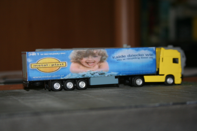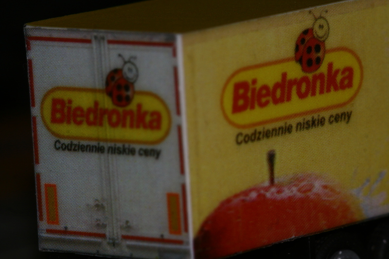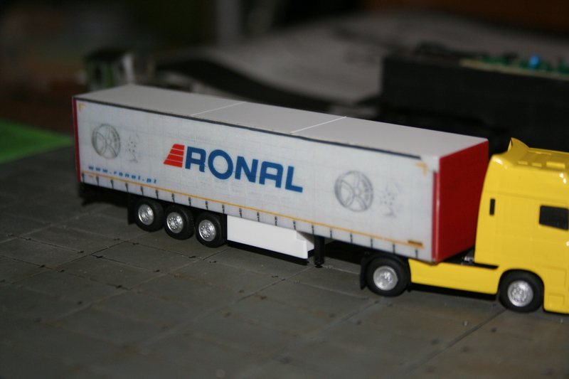 Naczepa biedronki uzupełniona o żółty kolor na dachu i z przodu (ktoś prosił o makro, to jest), fikcyjne naczepy Śnieżki i pół-fikcyjna metal-plast zmienione na istniejące w rzeczywistości Ronal oraz Wielton: