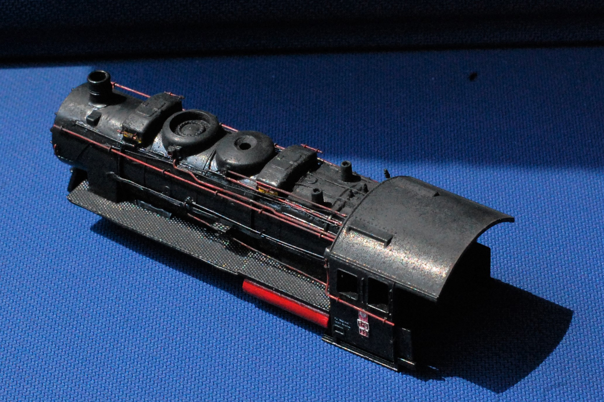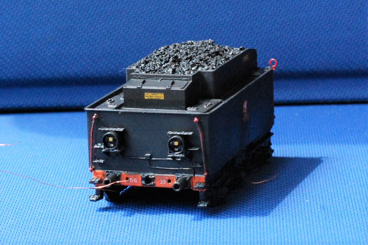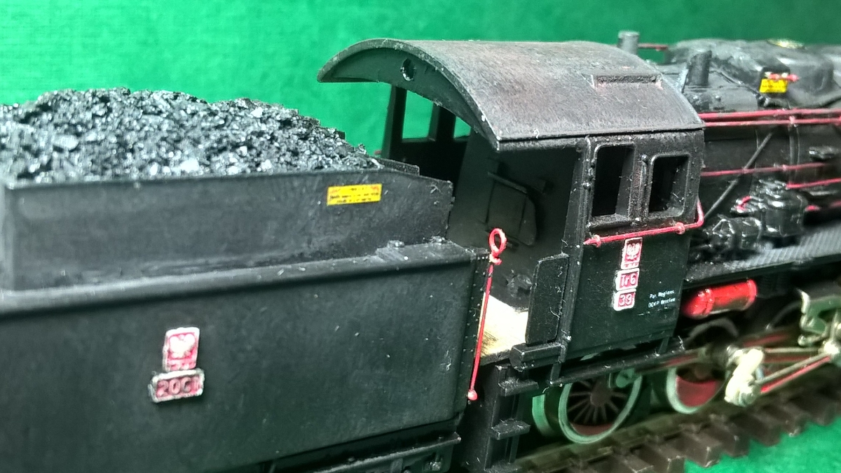 Pomosty i dach budki mogą być nieco rudawe od nalotu rdzy zmieszanego z sadzą. Tych elementów raczej nikt nie czyścił i nie ropował. Zacieki na burcie tendra powinny iść pionowo, a nie skosem. Ewentualnie można dodać delikatne białawe zacieki od zaworów kotłowych.
