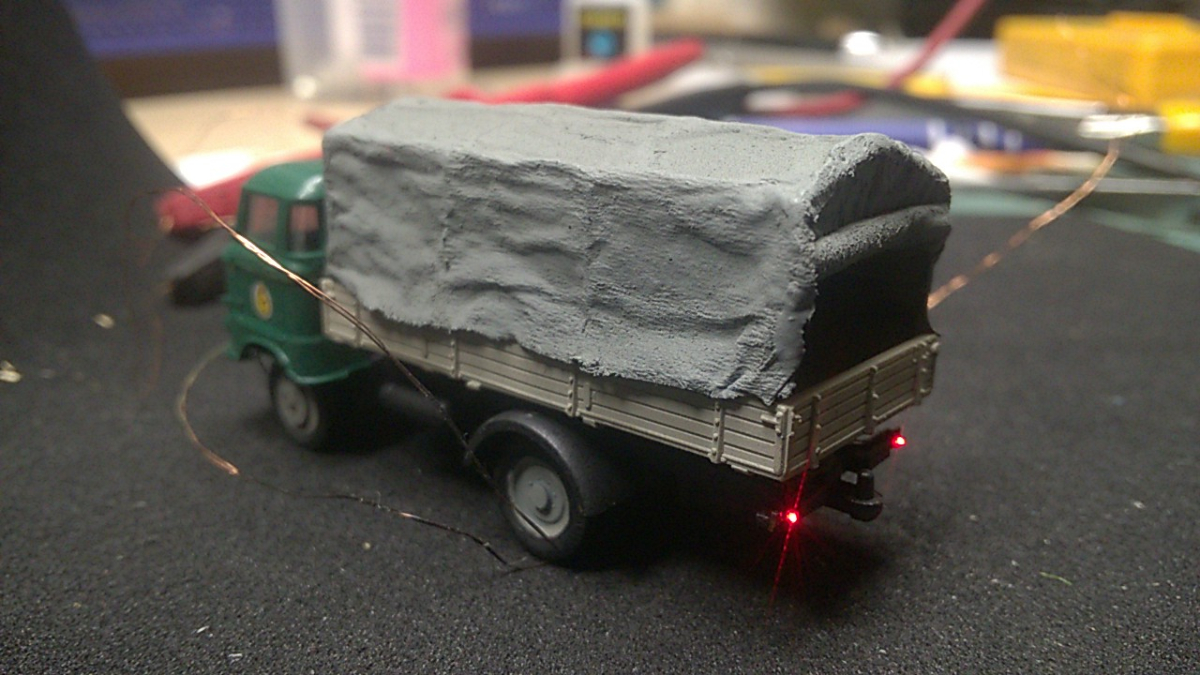 Niestety w niektórych miejscach farba na plandece zaczełą złazić podczas wycierania wascha.