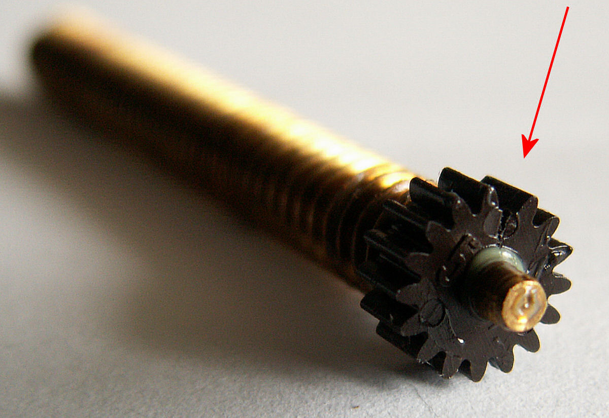 Loka niestety nie jeździ, przy próbie jazdy wydaje b. głośne terkotanie. Po rozebraniu loki okazało się, że nastąpiło samoistne uszkodzenie zębatki na wale ślimakowym. Rozstęp jest tak duży, że przekładnia się blokuje: Już o tym uszkodzeniu była mowa w wątku o BR 81 -głośna praca: