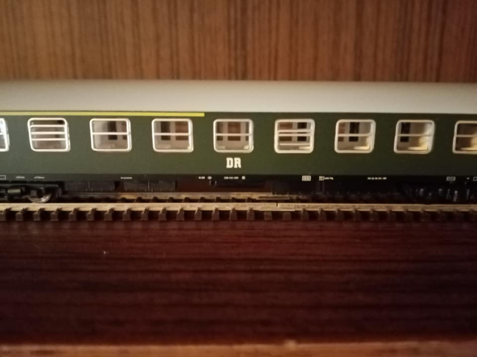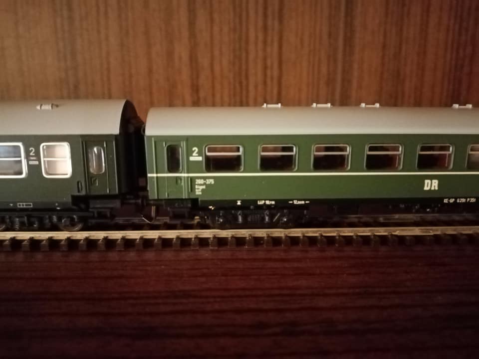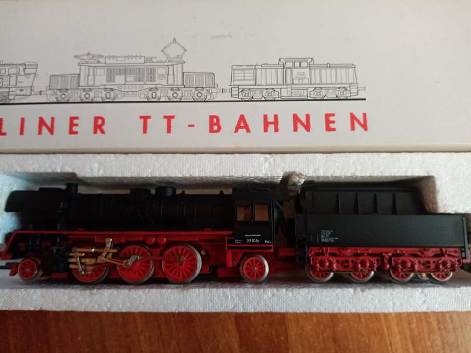 Firma Zeuke po zjednoczeniu miała modele w białych pudełkach z okienkiem i bez. Tutaj 23 1056 chociaż w katalogu 1990r już tej loki nie ma. W realu kiedy w pierwszej połowie lat 60tych część parowozów serii 01 przebudowywano kotły na reko to 23ki na jakiś czas weszły w ich plan. Nie trwało to długo. Wchodziły już diesle V180 i po pewnym czasie zadomowiły się w ruchu osobowym. Taka enerdowska oelka. Z tym że stosunkowo szybko była wycofana przez diesle 110ki i 118ki. W składzie z też nie często spotykanymi w modelach wagonami reko i Yek z trzeciej epoki. Zeuke oraz początkowy Tillig. Skład kolekcjonerski."