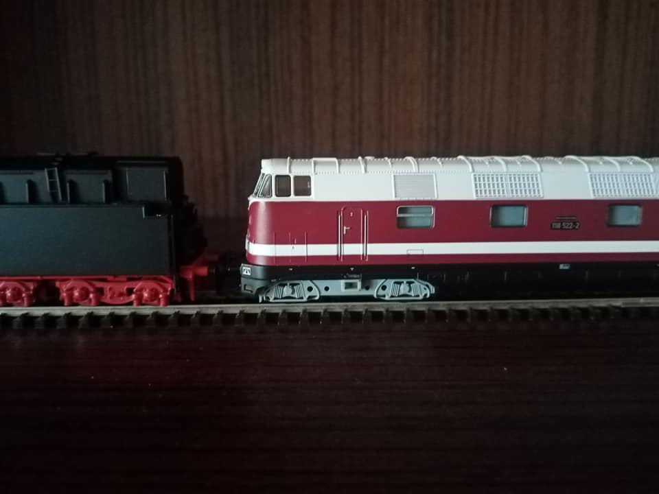 Skład osobowy obsługa trakcyjna maszyną towarową. Podobnie jak na PKP w DR również brakuje parowozów osobowych. Coraz więcej ferkeltaxi wchodzi do ruchu na lokalnych liniach. Tras z siecią trakcyjną jest niewiele. Dyspozytor daje na przyprzegu do osobowego parowóz który obsłuży skład zbiorowy. Zamieniona kolejność. Nazad z wagonami E5 wróci 50ka, a 56ka na manewry i zbiorak."