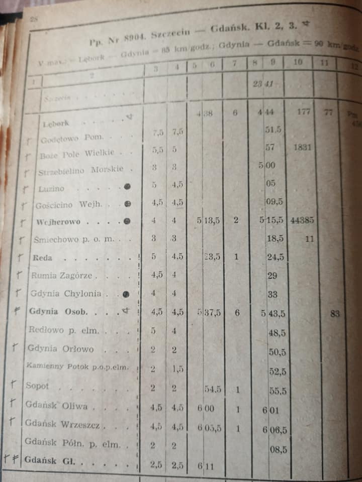 "Mały prezent dla tych co lubią PKP w trzeciej wczesnej epoce czyli tabor z orzełkami. Wiem że kiepska jakoś ale trudno. Służbowy rozkład jazdy z 1951r dyrekcja Gdańsk. Mały wycinek. Podstawą w ruchu dalekobieżnym to Pm2 potem Petucha i Okawka."