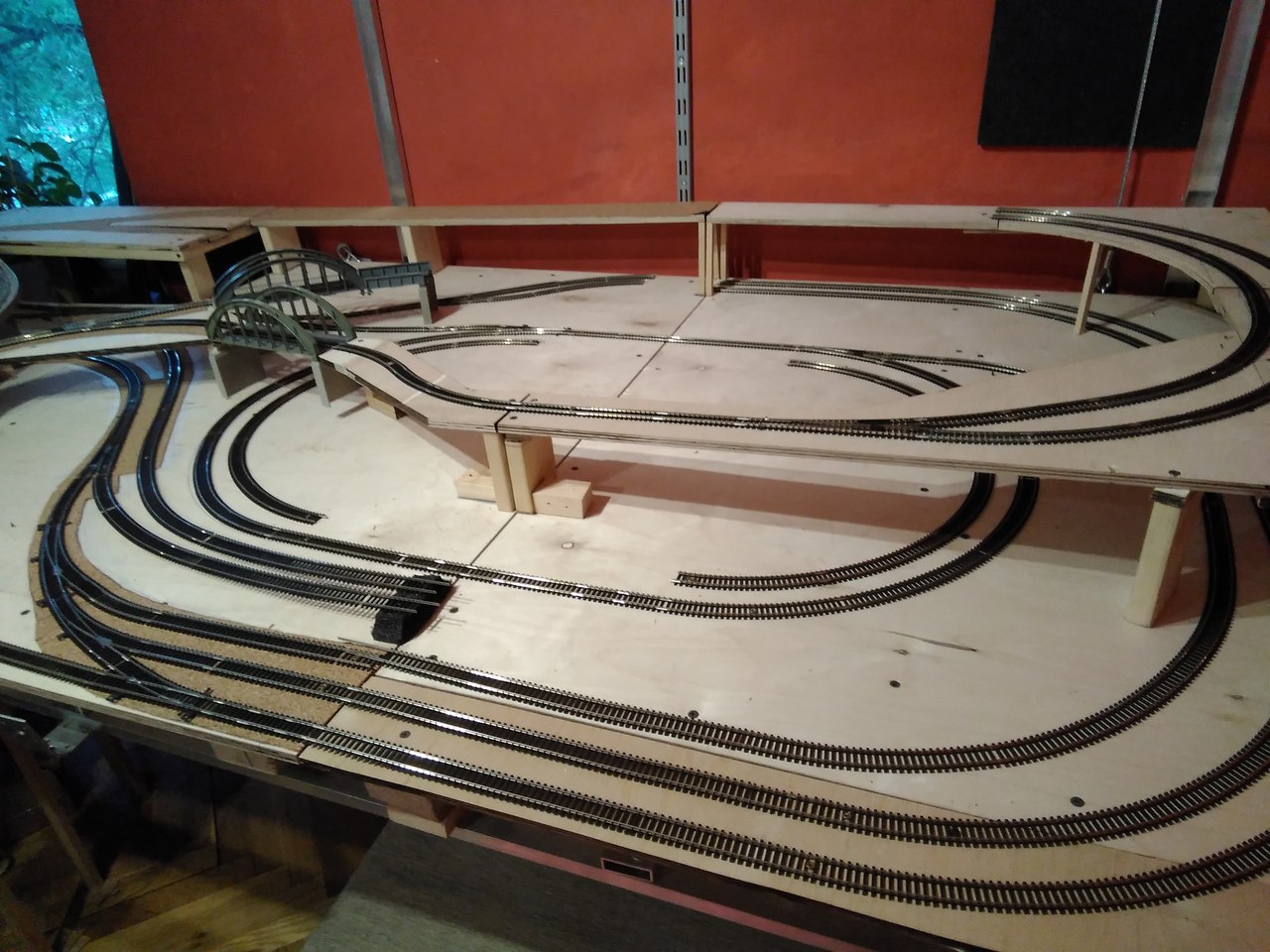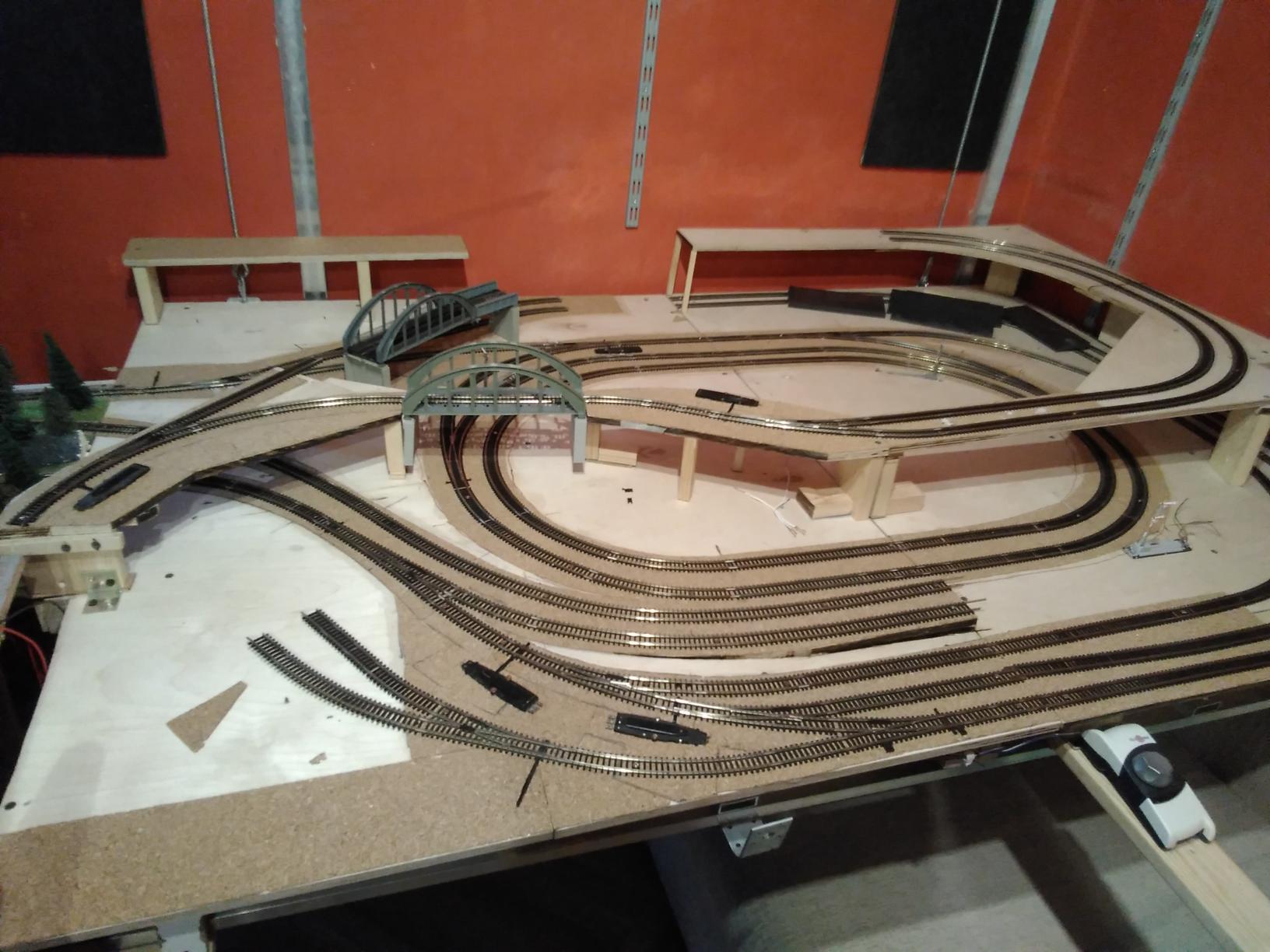 Efekt dnia dzisiejszego, przejście ze starej makiety na nową. Tory tak na szybko z tego co mam. Czekam na dostawę....