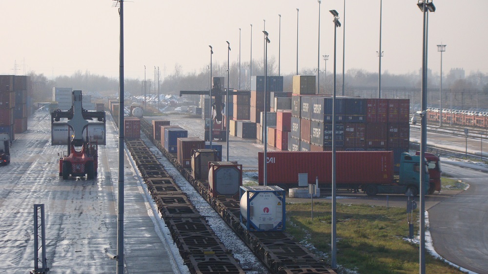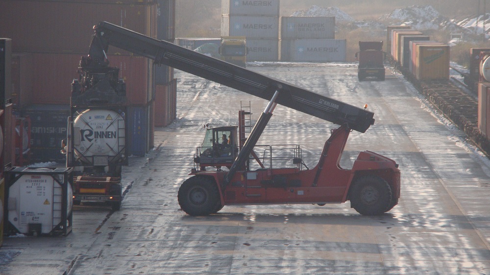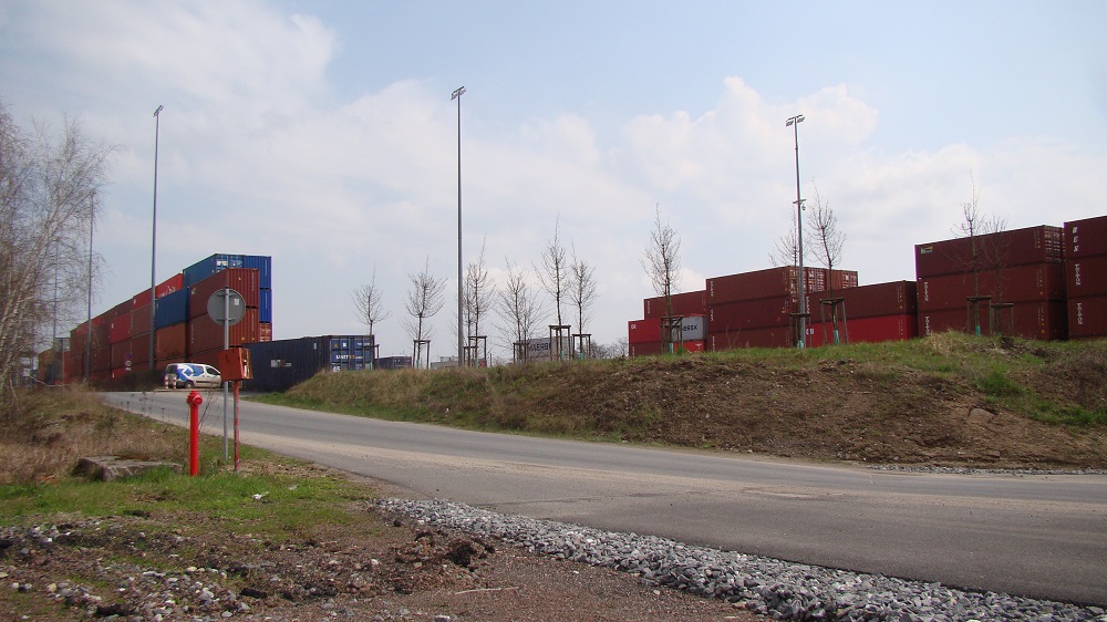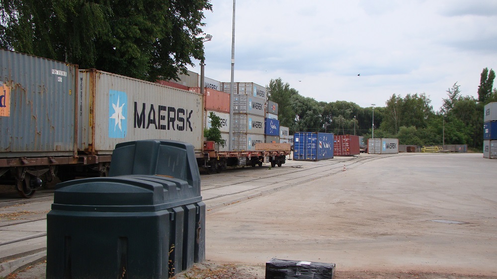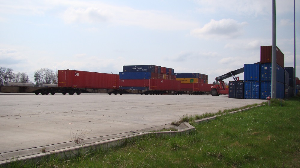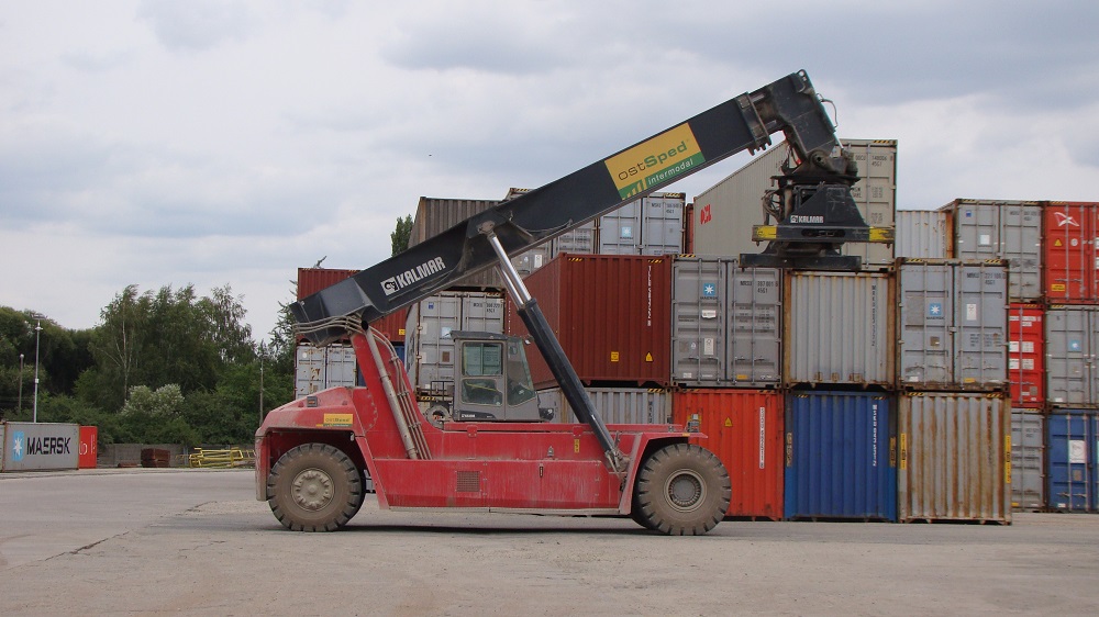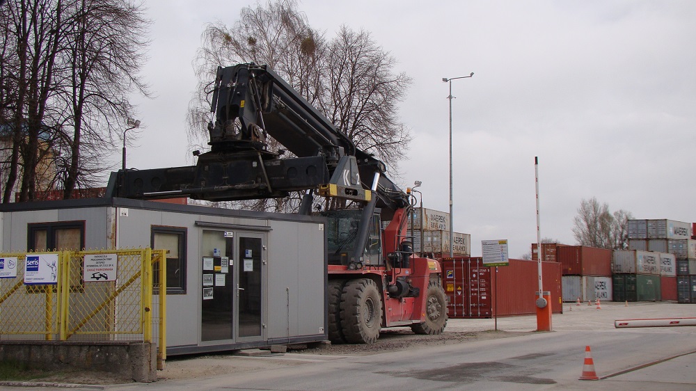 Niewielki terminal kontenerowy firmy OstSped w Szamotułach:
