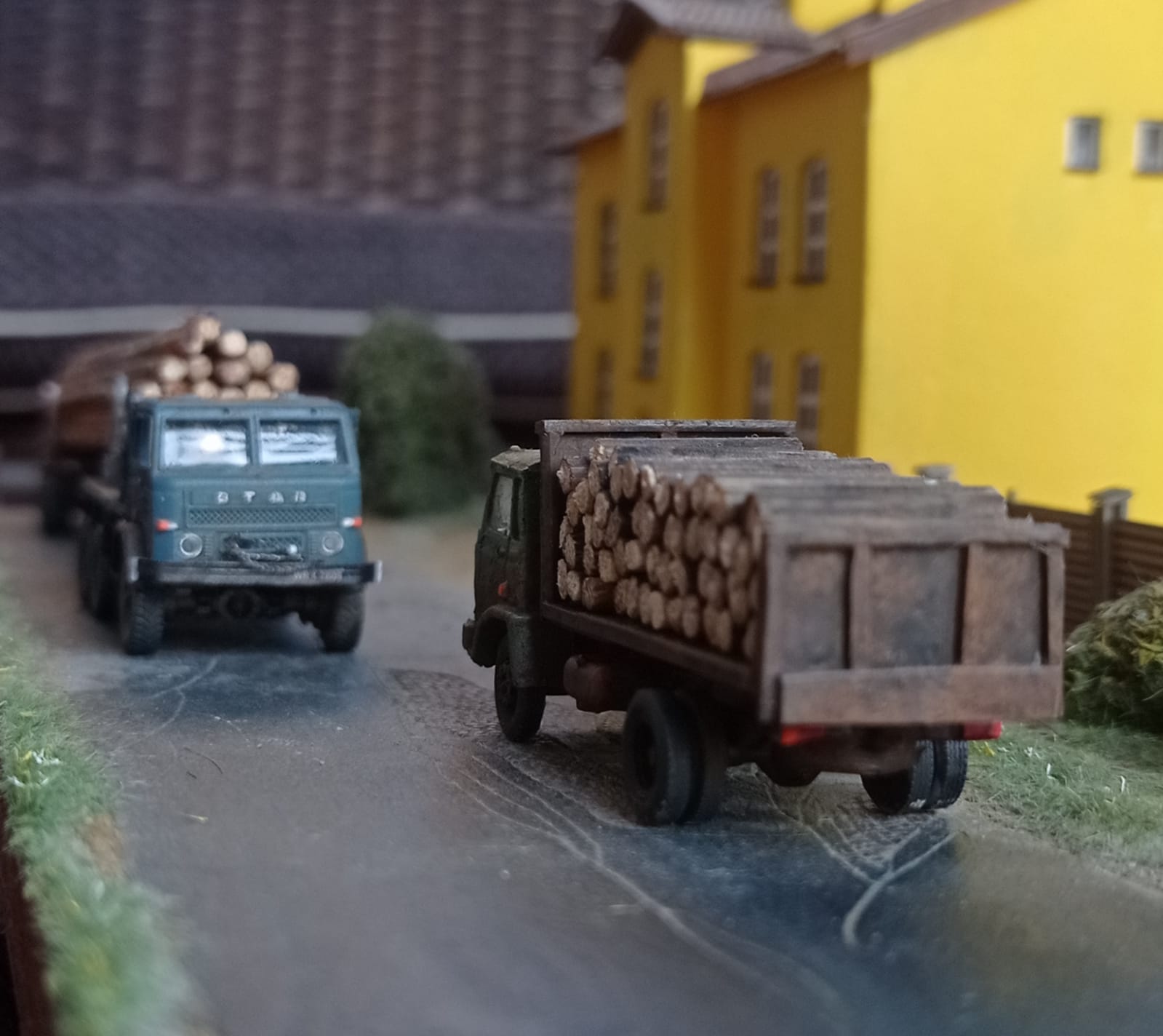 Bo to złomek. Miał stać w wysokich krzakach czekając na unicestwienie, ale jak się naoglądałem złomu z lasów wożących drewno to wyjąłem go z pudełka złom i dorobiłem pakę i koła.Wojtek_Kraków pisze: ↑28 cze 2021, 06:44... ta 200tka (kabina) strasznie pomalowana.