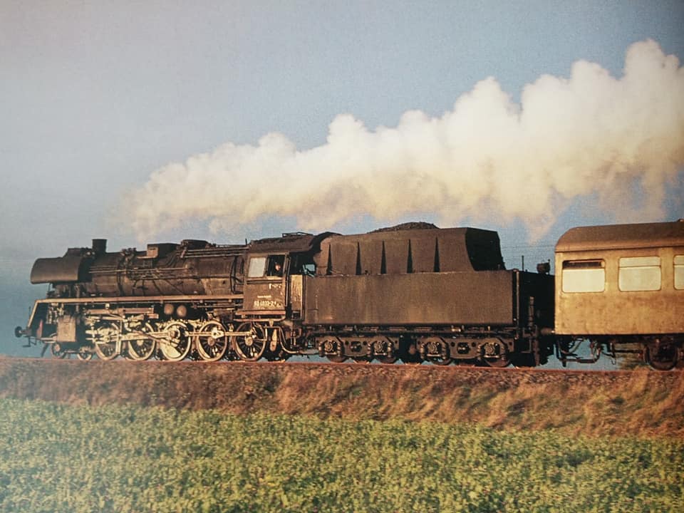 "Stara znajoma. Dawniej znana wszystkim seria 242 018 starego Gutzolda pod szyldem BTTB. Tutaj w oryginale w węźle kolejowym Halle z pociągiem podmiejskim. Pierwszy na haku wagon typu E5. Rok 1971 epoka wczesna czwarta. Przydział i stacjonowanie lokomotywownia Halle oraz niezliczona ilość makiet TTortów w dawnym bloku wschodnim. Kolekcjonerzy staroci w dobrym stanie łączcie się."