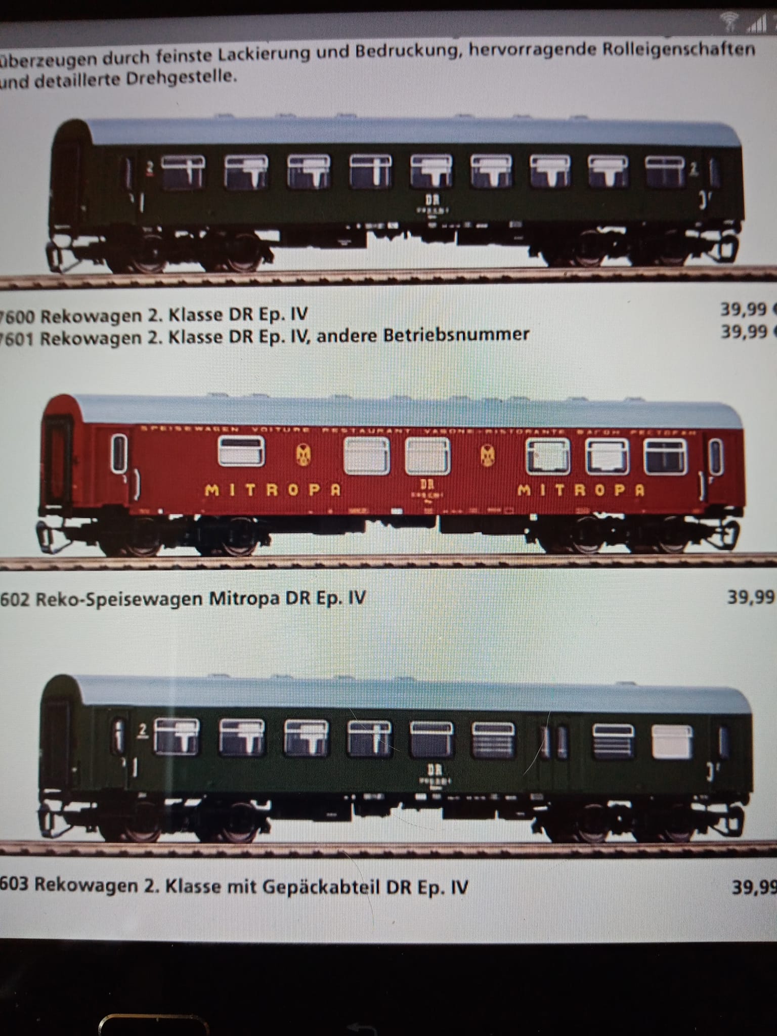 Pierwszy wypust wagonów reko firmy Piko epoka czwarta oraz 119ka tej samej firmy. Który wypust tego modelu tego nie wiem. Tutaj na grupie są koledzy fachowcy od modeli Piko to będą wiedzieć. Mnie interesuje tylko klasyczny model 119ki w wersji fabrycznej DR. Natomiast jeśli chodzi o set wagonów reko to wersja Mitropy oddany model bardzo ładnie i lepiej prezentuje się na żywo jak w katalogu. Mamy klasyczny set. Rok 1980. Pierwsze ubooty w oryginale były usterkowe i dyspozytor w szopie wolał mieć pod parą zdatne parowozy do ruchu na wszelki wypadek."