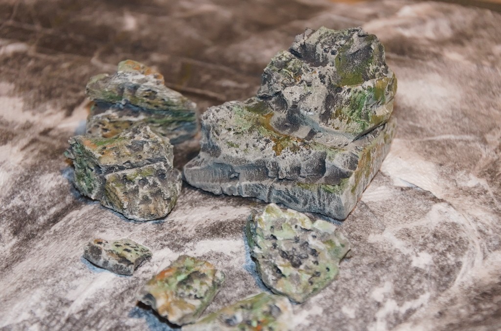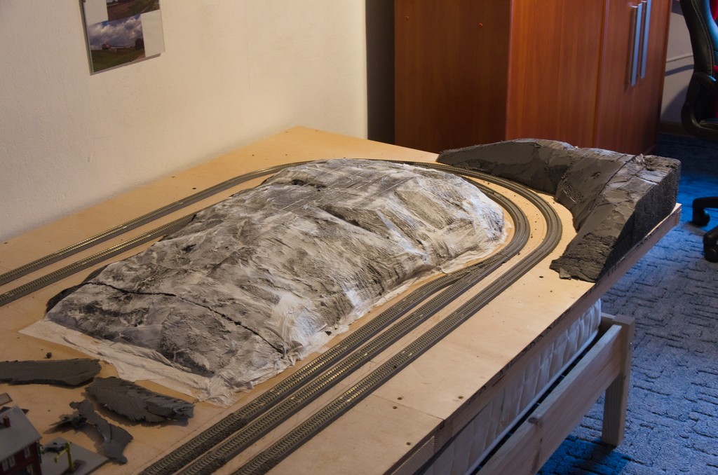 Powoli powstaje ukształtowanie terenu. Ze ścinków pozostałych po "ruchach górotwórczych" wyprodukowaliśmy kilka skałek.
