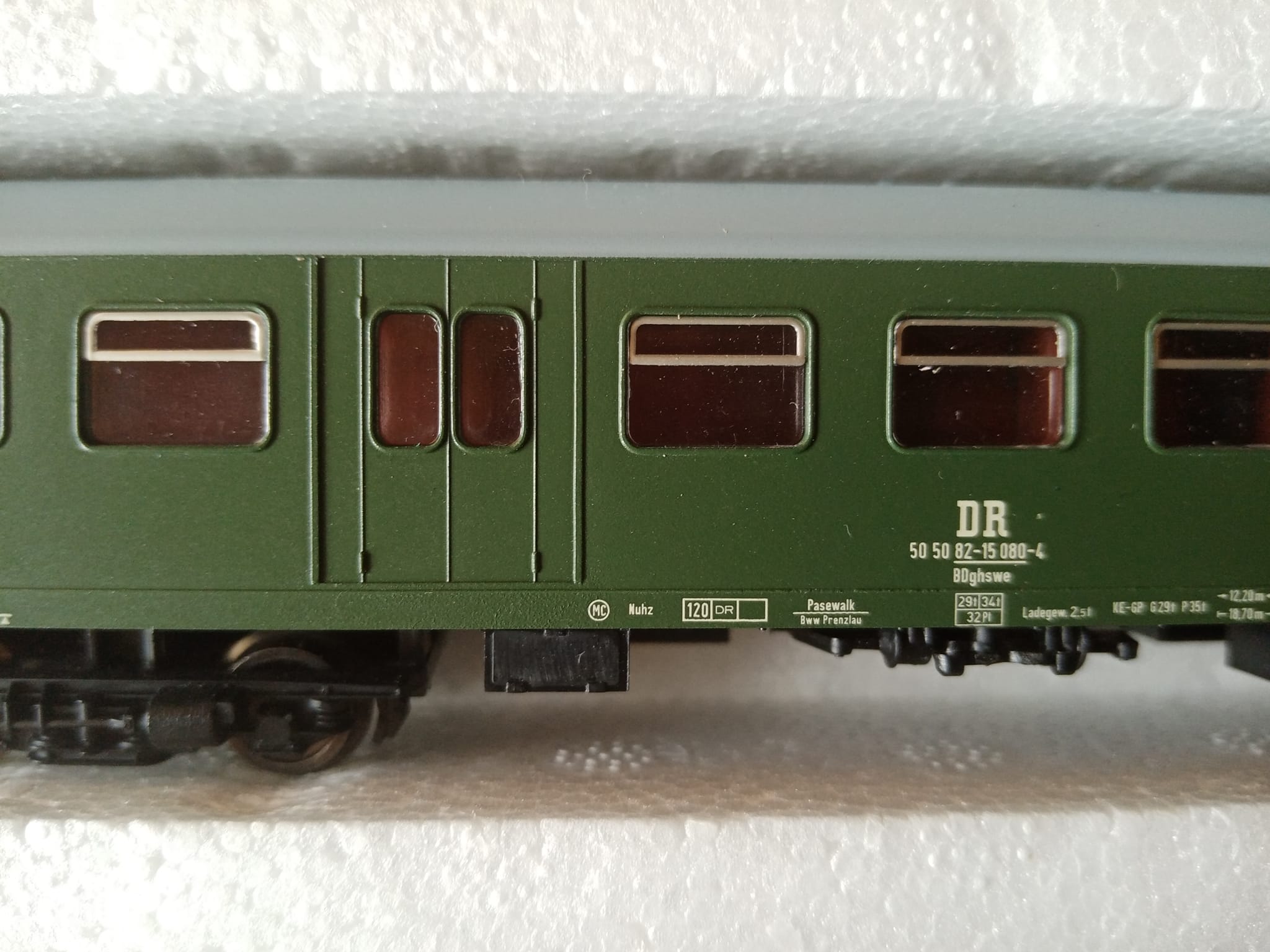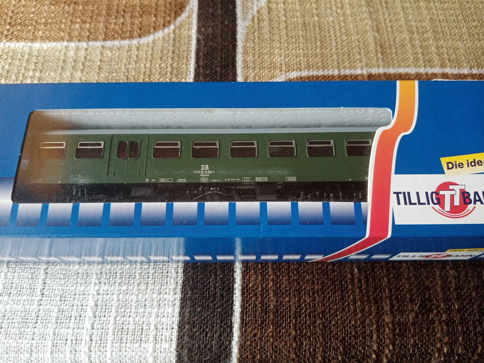 Wagon bufetowy REKO z czwartej epoki. Nr 50 50 87 - 15624-4. Natomiast nr kat 13752. Barwę tą otrzymał po przebudowie w 1988r. Wycofany 5 lat później. Na fotce oryginału jego bliski kolega z innym numerem. Zdjęcia w tym malowaniu REKO oryginał nie są częste więc tym bardziej wartościowe. Barwa u schyłku kolei DR. Odpowiednik w TT pierwszy raz ukazał się jeszcze przed Tilligiem w katalogu 1992. Później była też nieco zmieniona wersja 13755 już Tilliga. Aż przyszła nowa właściwa wersja tego modelu bez skrętopysków."