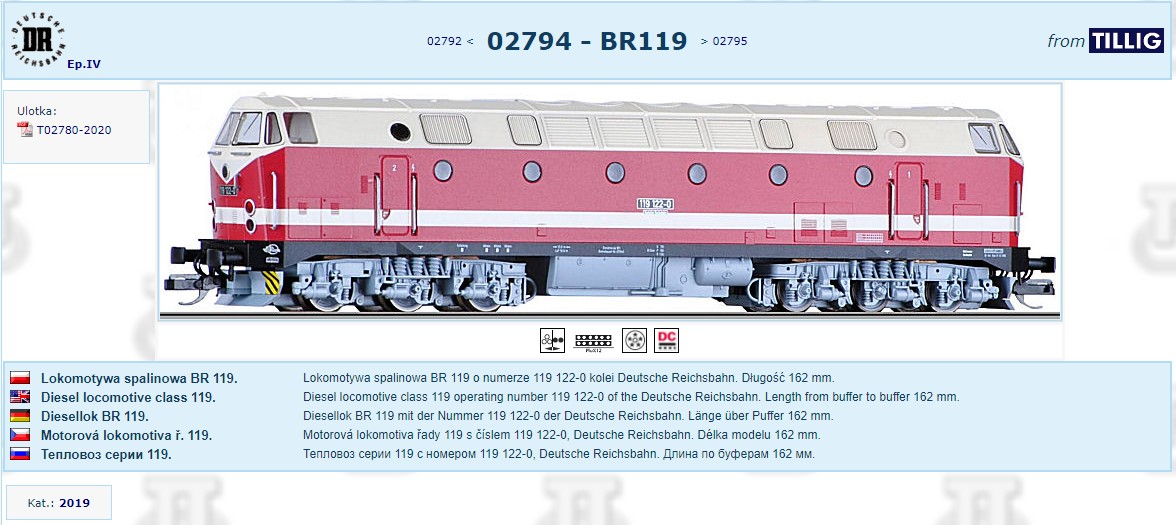 Tillig nr kat 501640. Elektryk E19 01 dla zbieraczy epoki drugiej. Silniejsza odmiana znanej E18. Z kolorowych fotek tego okresu znalazłem zdjęcia jej siostry czyli dwójki. Produkcja 1939/40r. Po wojnie na DB. Kilka zdjęć z tego okresu. Jest też wersja przejściowa tego modelu ale widziałem go w skali H0. Dokładnie wczesna epoka trzecia czyli wiśniowy kolor bez glapy. W ruchu planowym do 1977r."