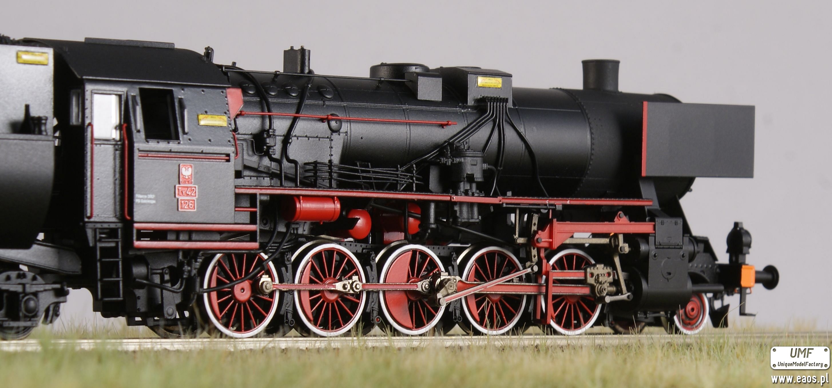Sam Ty42-126 H0 jest dość nietypowy. Ma zupełnie inne niż reszta orurowanie kotła po lewej stronie. Kanciasta skrzynia węglowa oraz trzeci reflektor na drzwiach dymnicy to jedynie ułamek detali.