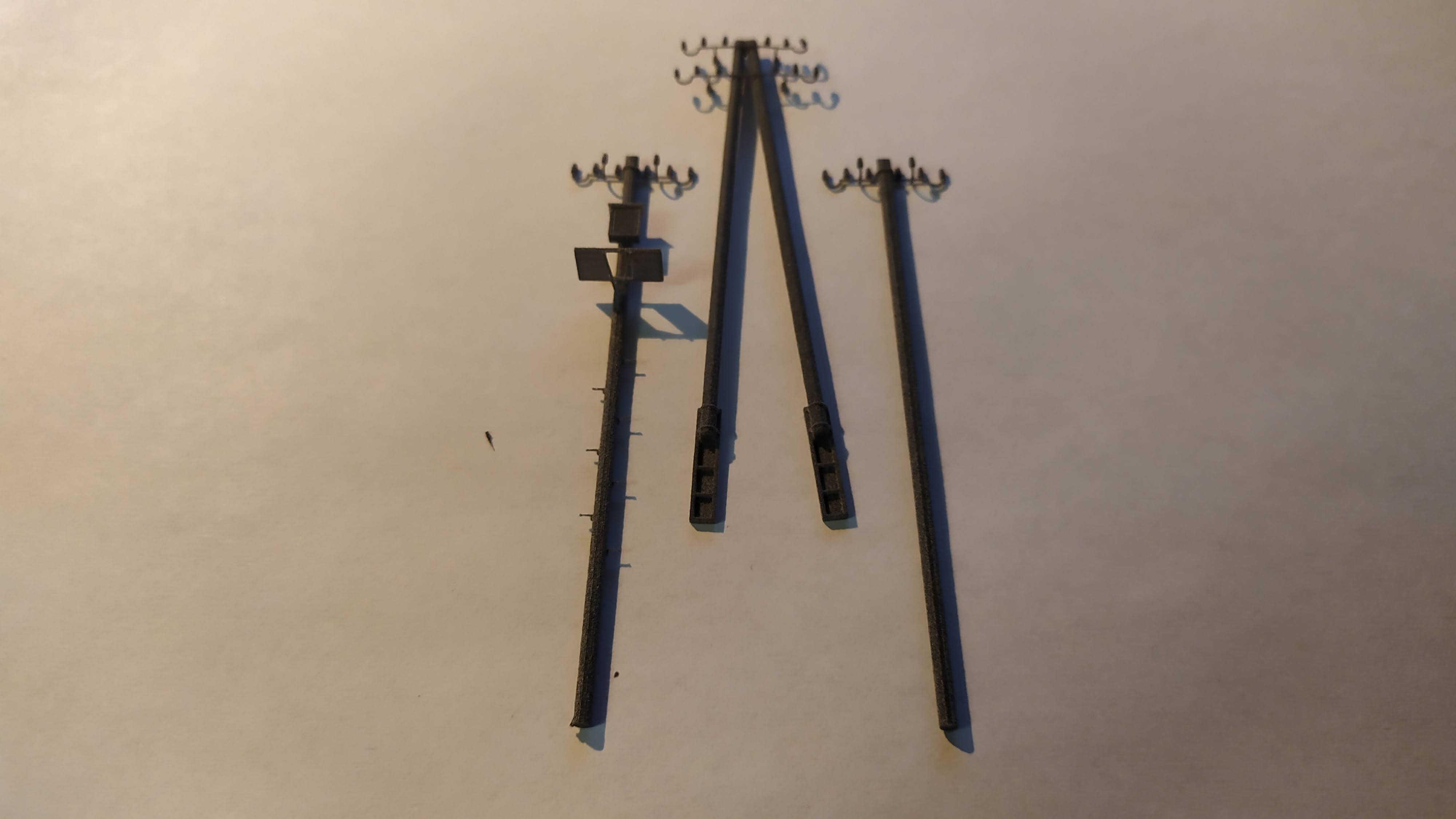 Męczyłem kiedyś temat słupów telegraficznych i wymęczyłem w końcu z patyków, w części drukowane w żywicy. Z druków połowa poprzeczników popękała przy odcinaniu podpór, część udało się złożyć. Gdybym wcześniej wpadł na wydruk proszkowy, słupy byłyby praktycznie niezniszczalne :) Teraz czekają aż połamię te makietowe.