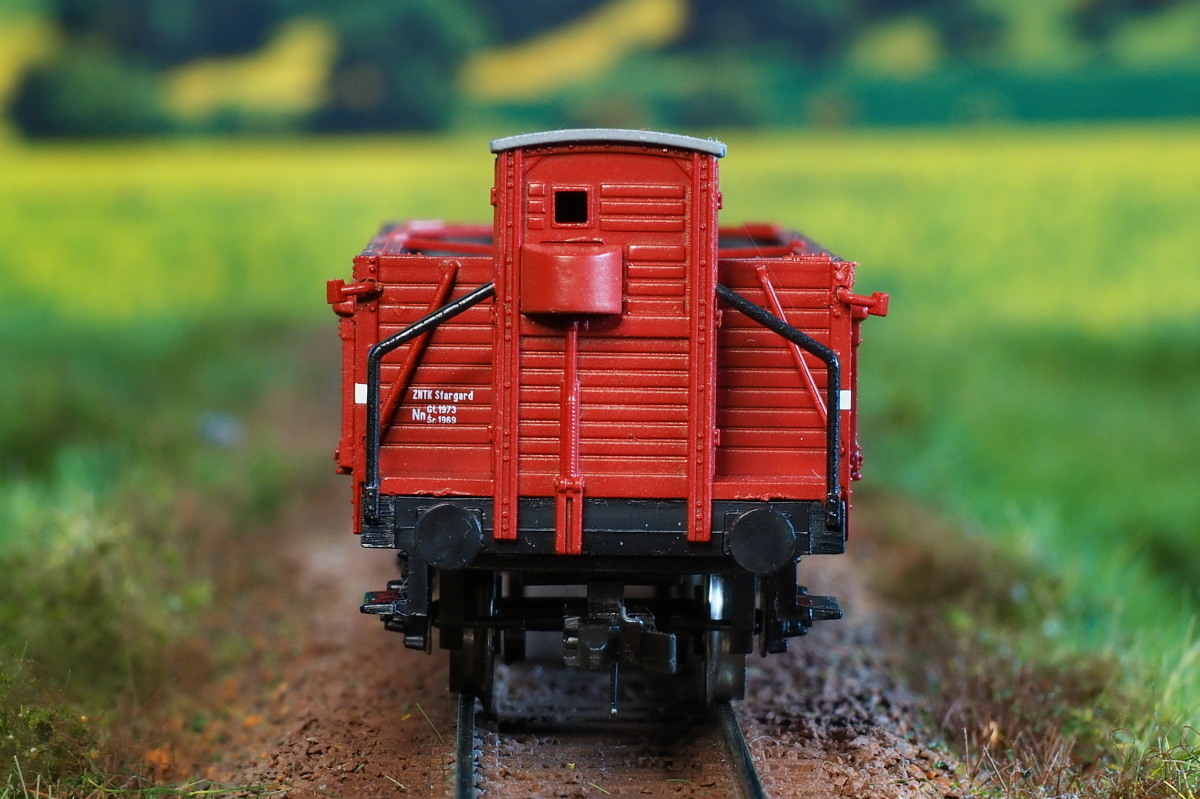 Oprócz tego doszła jeszcze dwuosiowa platforma z budką hamulcową i ładunkiem drewna serii X (DR epoka III, Tillig nr kat.: 14631)