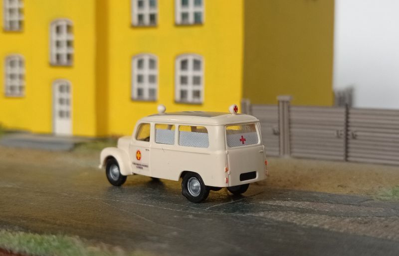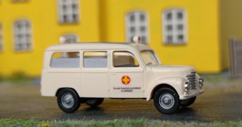 Ambulans występujący w Polsce w kolumnie transportu sanitarnego w latach 50.