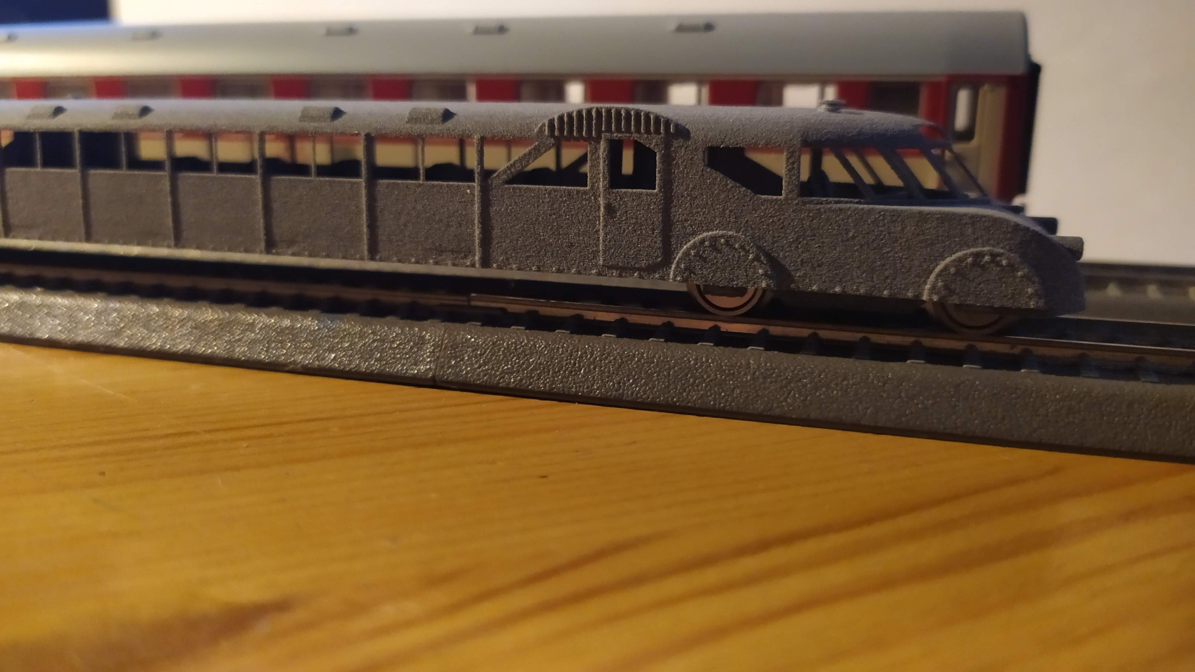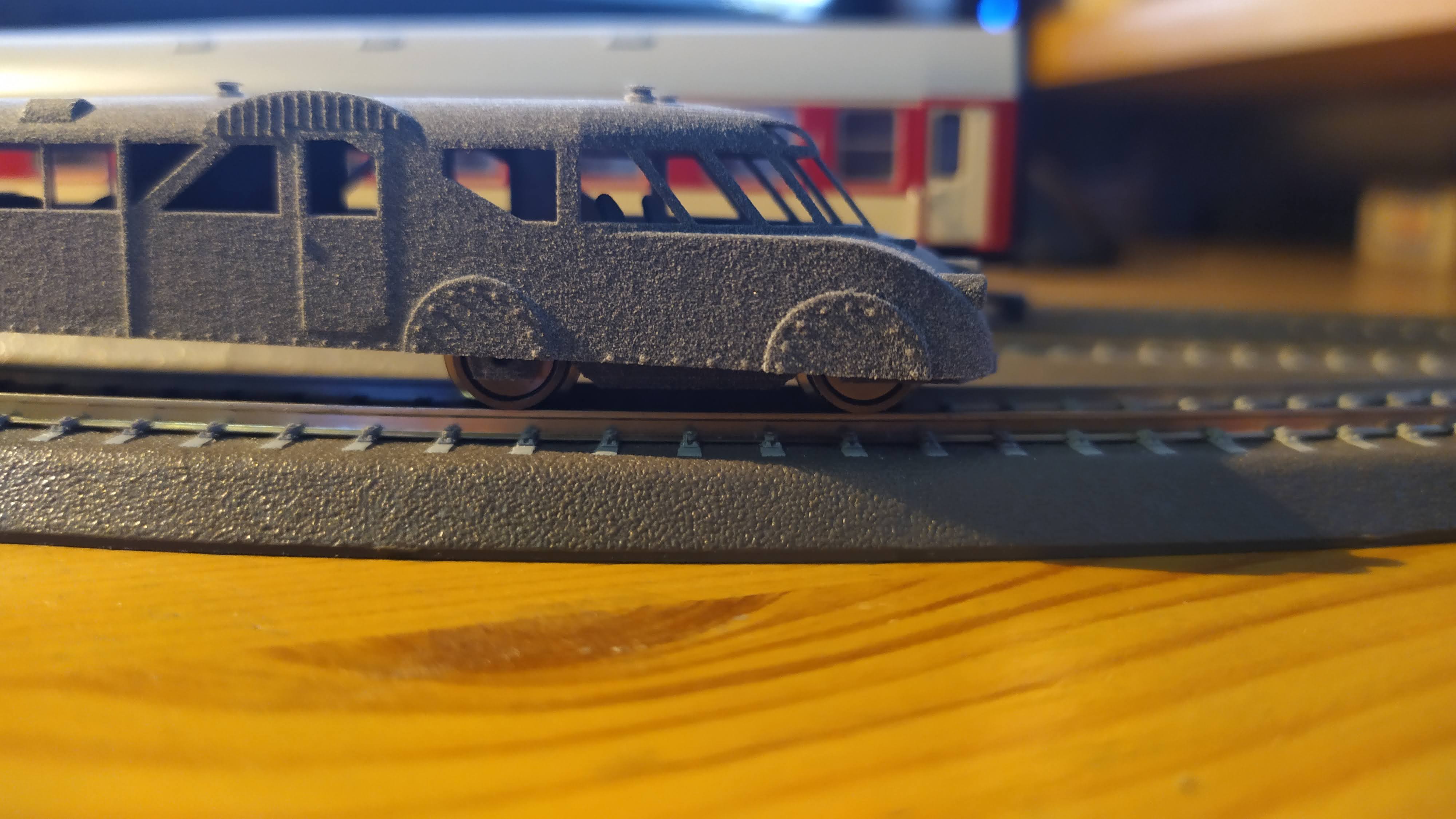 Jeszcze kilka poprawek po próbnym druku i jamnik wyjedzie na tory. Nie przewiduję póki co napędu. Model ma bardzo szeroko rozstawione wózki i bardzo mało miejsca nad nimi :(