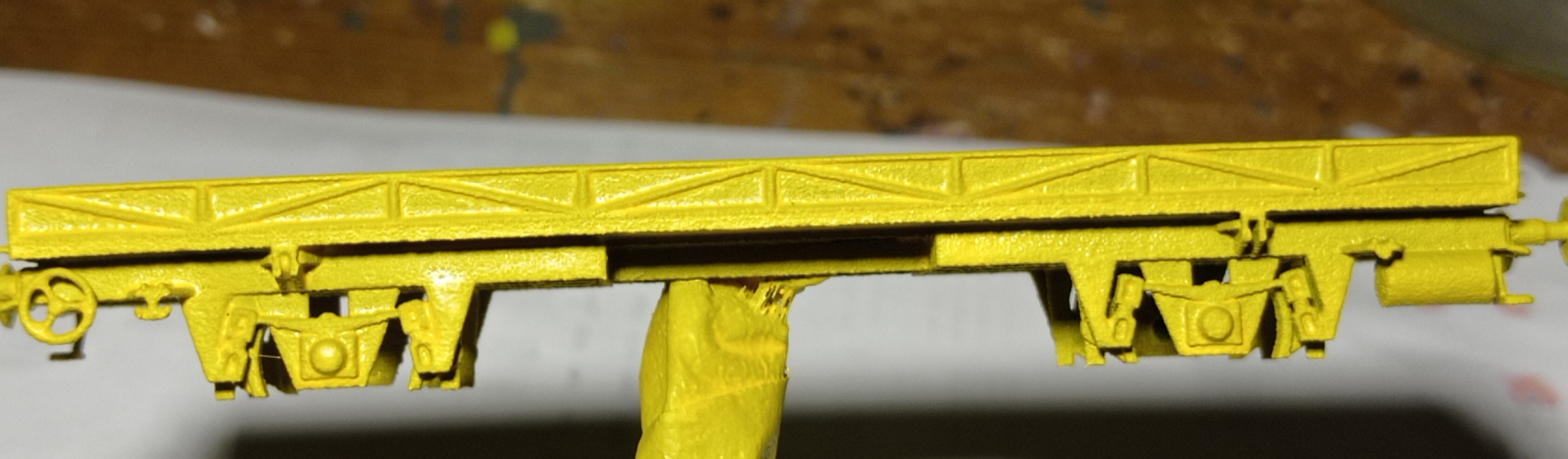 Na zdjęciach wózka od WM-ki wyraźnie widać, że nawet po pokryciu masą i pomalowaniu powierzchnia modelu jest dalej kaszowata. Za to doszło do niepożądanego wyoblenia (zalania) krawędzi i wnęk. :/