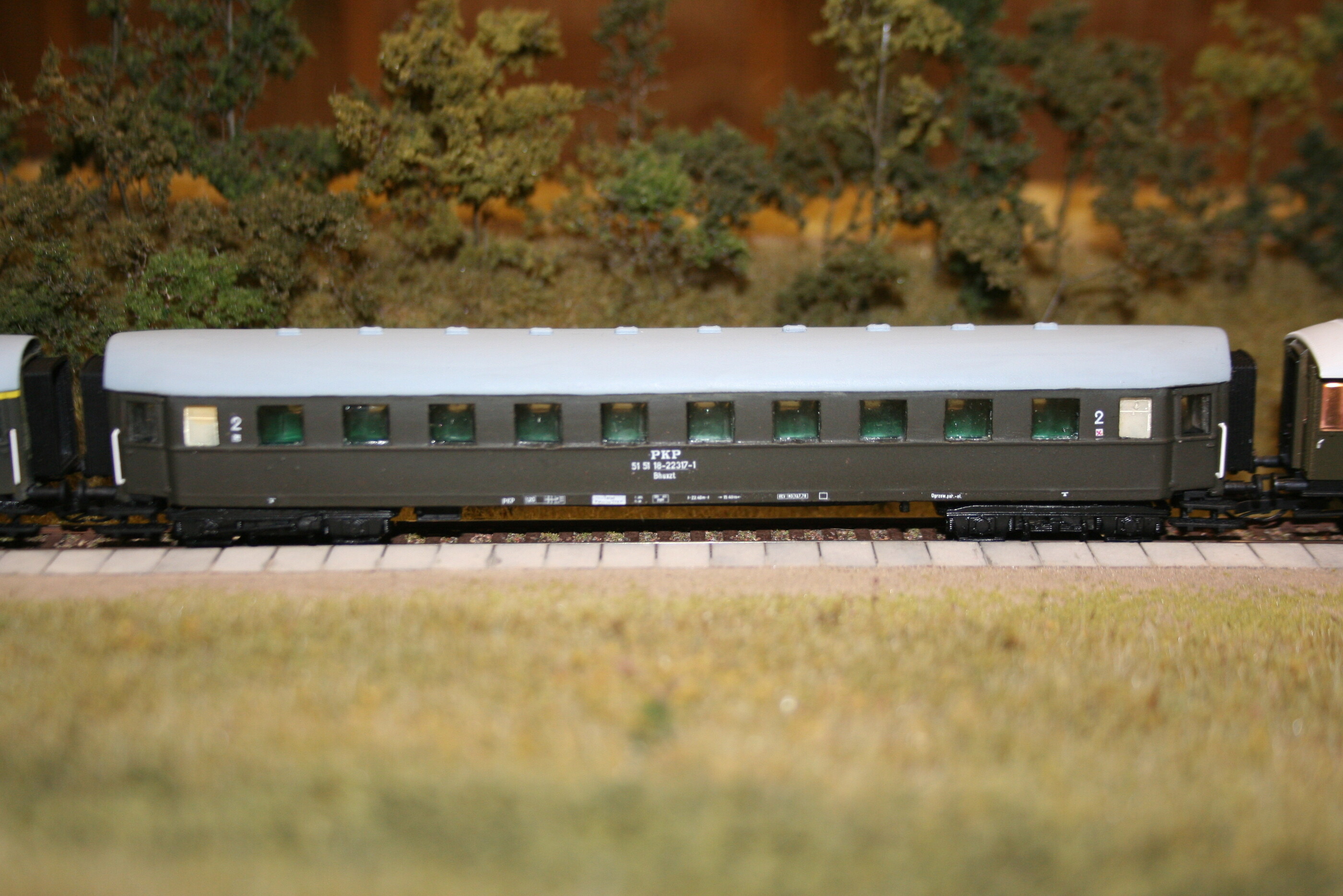 Wagony z szarym dachem różnią się tylko numerem (no i rewizją), wagon oliwkowy (też inny numer) ma dodatkowo zamiast piktogramów "dla palących" i "dla niepalących" napisy.