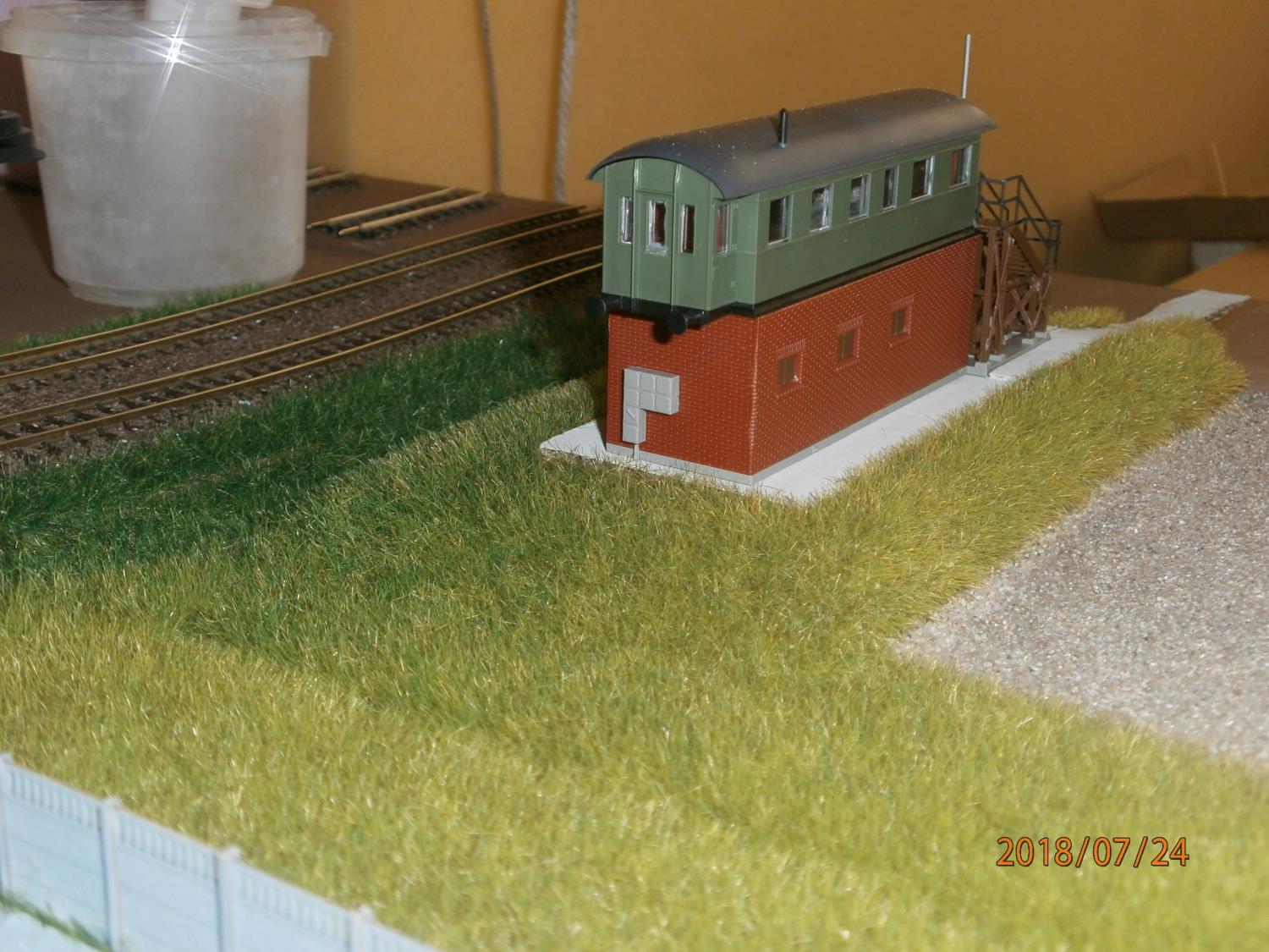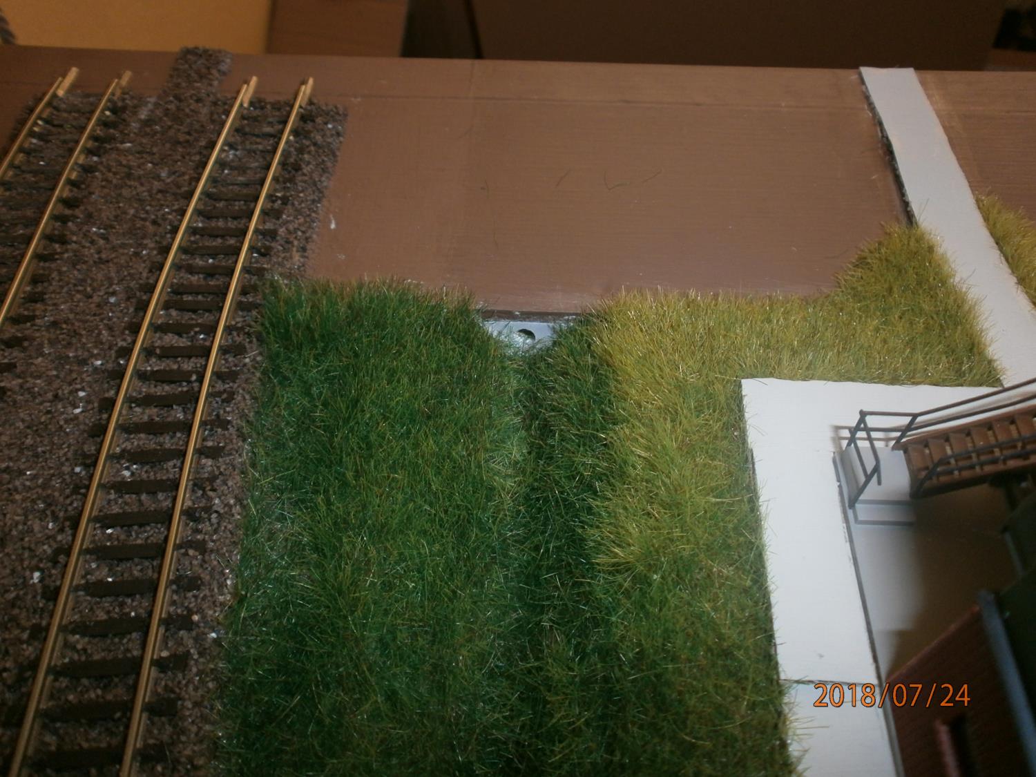To może jeszcze raz. Tak jak opisujesz zrobiłem wszystkie swoje moduły oprócz dwóch ostatnich. Czyli najpierw szutrowałem tory tłuczniem, a później pokrywałem moduł ziemią. W dwóch ostatnich zrobiłem odwrotnie: najpierw moduł pokryłem ziemią, a później szutrowałem tory. Zamienienie etapów prac spowodowało, że nie musiałem się martwić, że będą jakieś luki między ziemią a tłuczniem, a że tłuczeń rozsypał się na ziemię dodało realizmu.