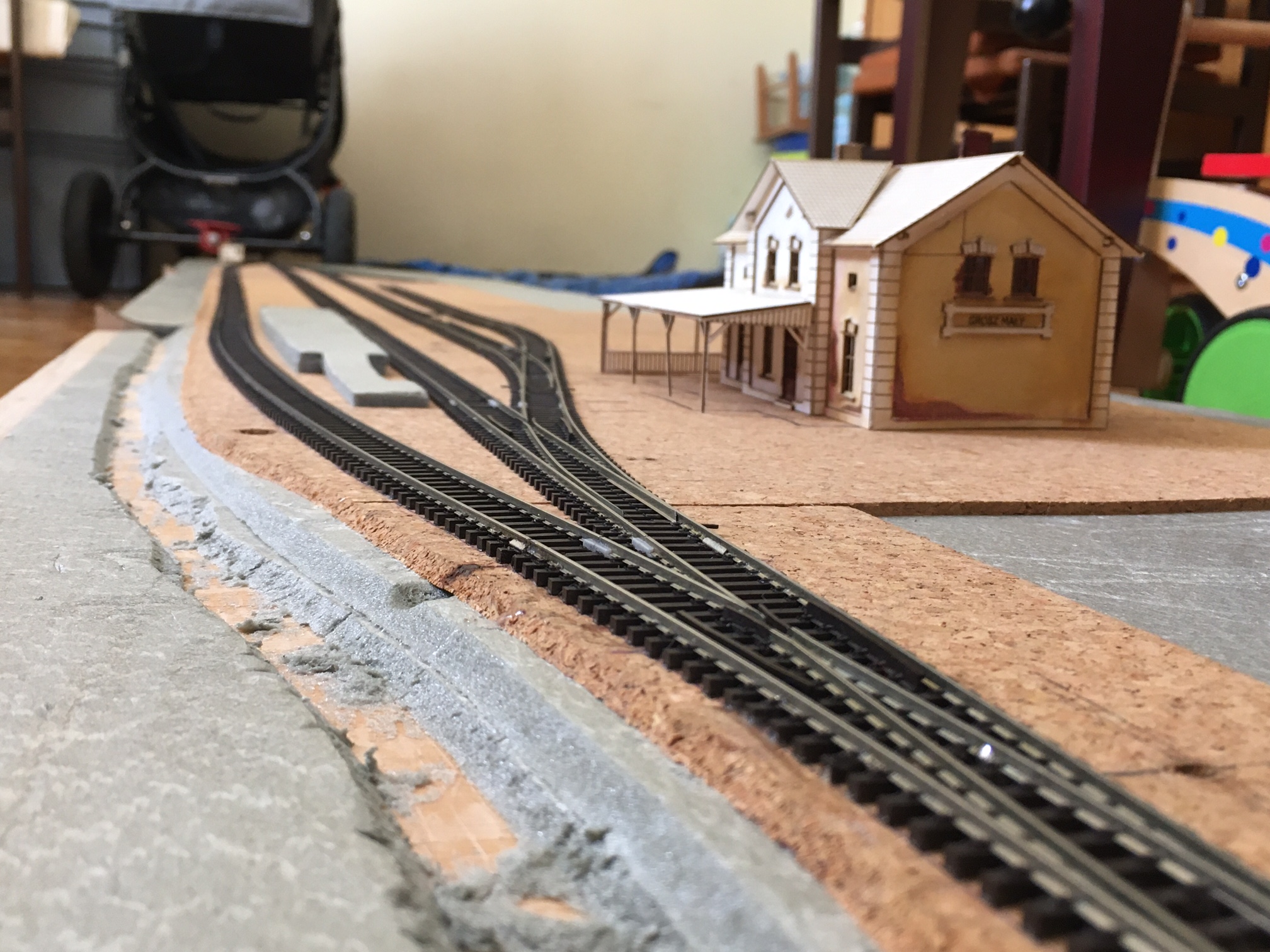 Obecnie stacja to 3 segmenty 90cm po pracach stolarskich i elektrycznych. Dojdą jeszcze 30cm segmenty z semaforami wjazdowymi i tarczami ostrzegawczymi.
