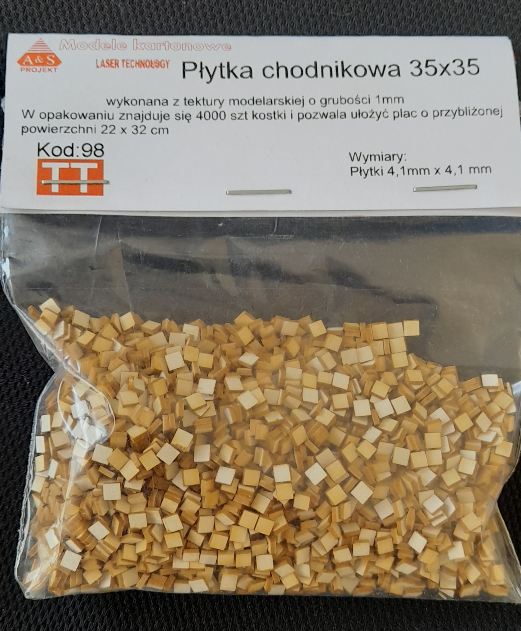 Płytki wstępnie pomalowałem farbami olejnymi HUMBROL, ale docelowo będą jeszcze 'dopieszczane'by wyglądały na stare chodnikowe...