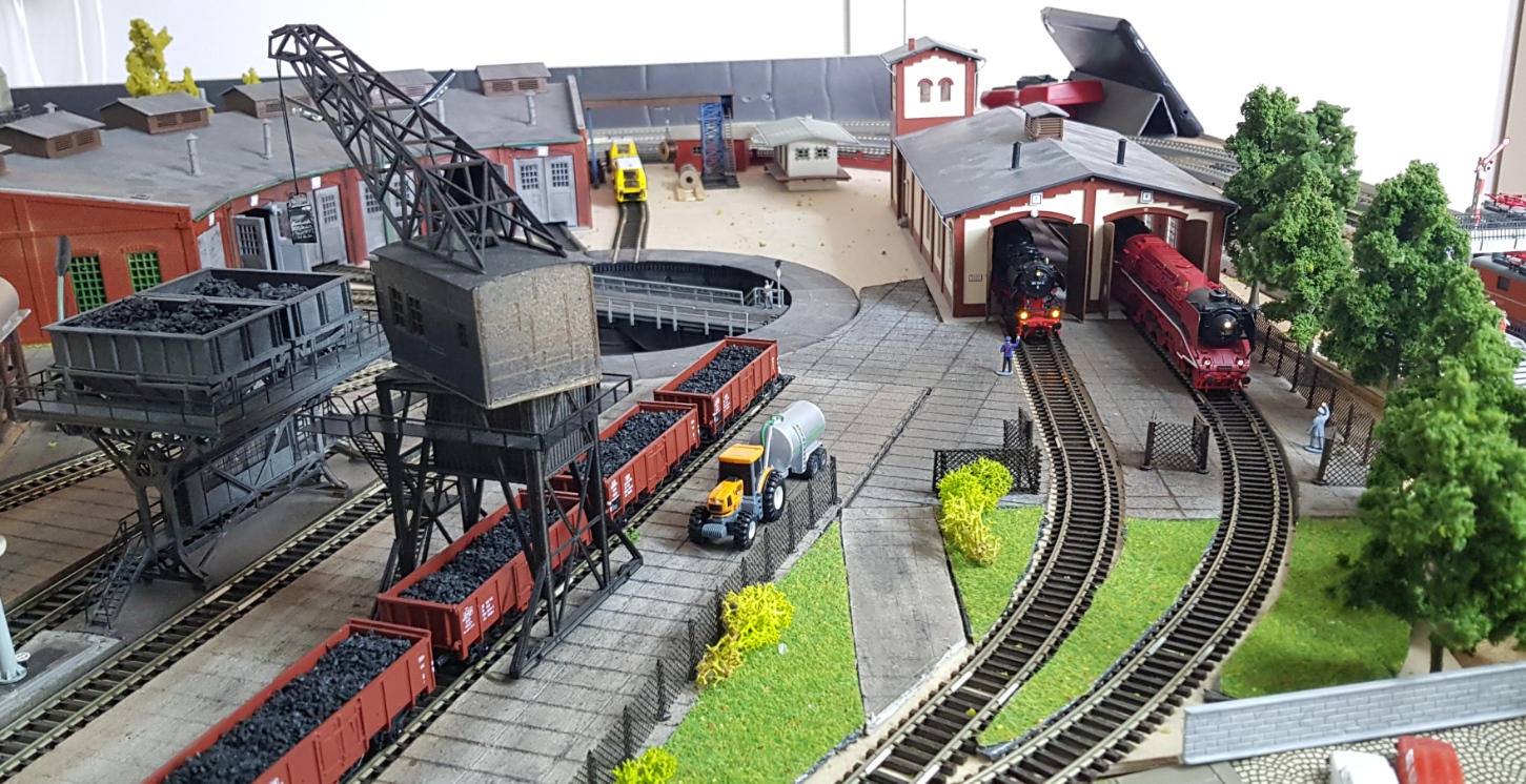 Gdyby jeszcze udało się zrobić np. 2-3 dojazdy dochodzące do obrotnicy pod takimi kątami jak stanowiska parowozowni (a nie tylko jeden) to BR18 mogłaby z tych torów wjechać (bez obrotu) na te 2-3 stanowiska (leżące na przeciw torów dojazdowych). Zawsze urozmaica to trochę zabawę, zwłaszcza gdybyś kiedyś nabył kolejny nieco zbyt długi parowóz.
