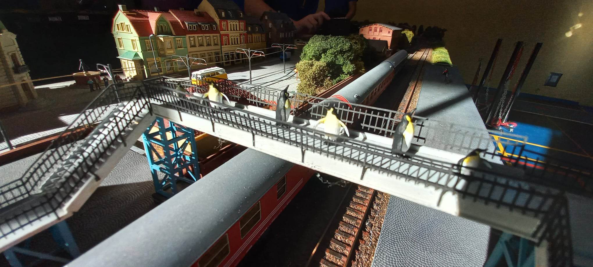 Bardzo ładne to wszystko. Czy motywem przewodnim były uciekające z transportu egzotyczne zwierzęta? Na peronie słoń, na moście pingwiny…