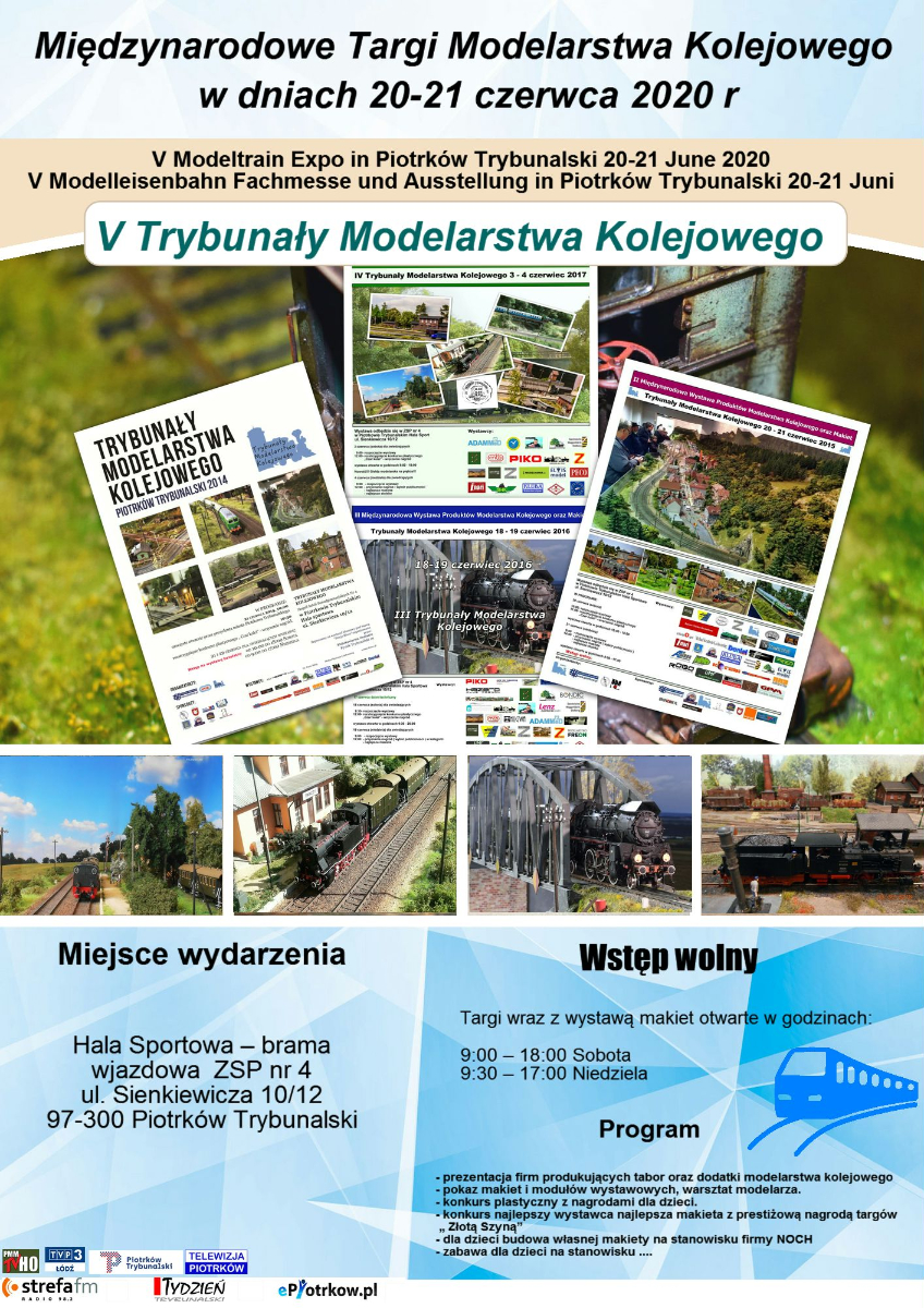 Trybunały Modelarstwa Kolejowego już 20-21 czerwca 2020 roku. Jubileuszowa V Edycja Międzynarodowych Targów Modelarstwa Kolejowego w Piotrkowie Trybunalskim z pokazem makiet.
