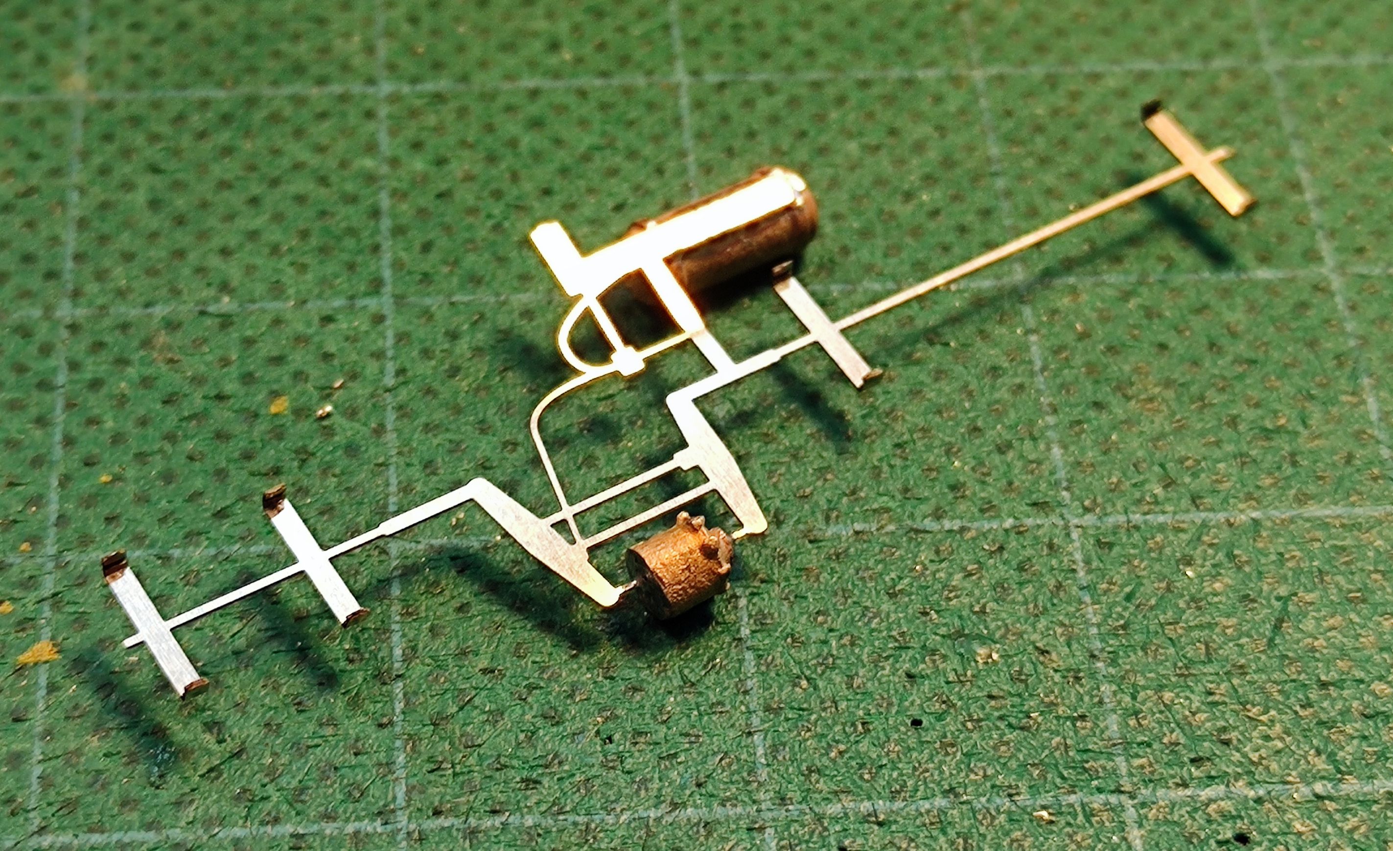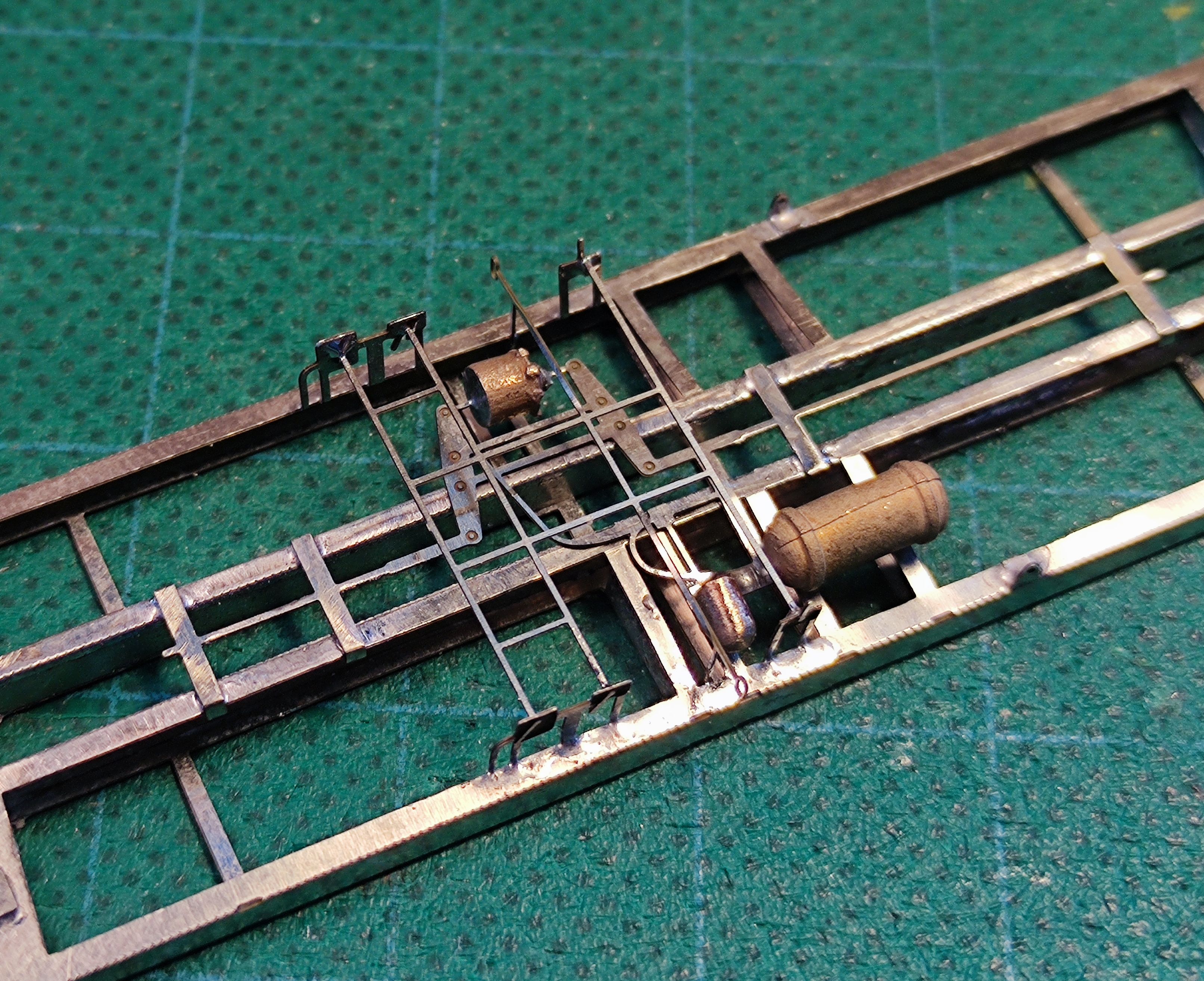 Jakby ktoś chciał jeszcze bardziej dopracować tę pajęczynę, to w miejscu małego kwadracika w pobliżu zbiorników (pomocniczego i sterującego) można przylutować pionowo króki kawałeczek drutu miedzianego, który będzie imitował zawór rozrządczy Oerlikona. :)