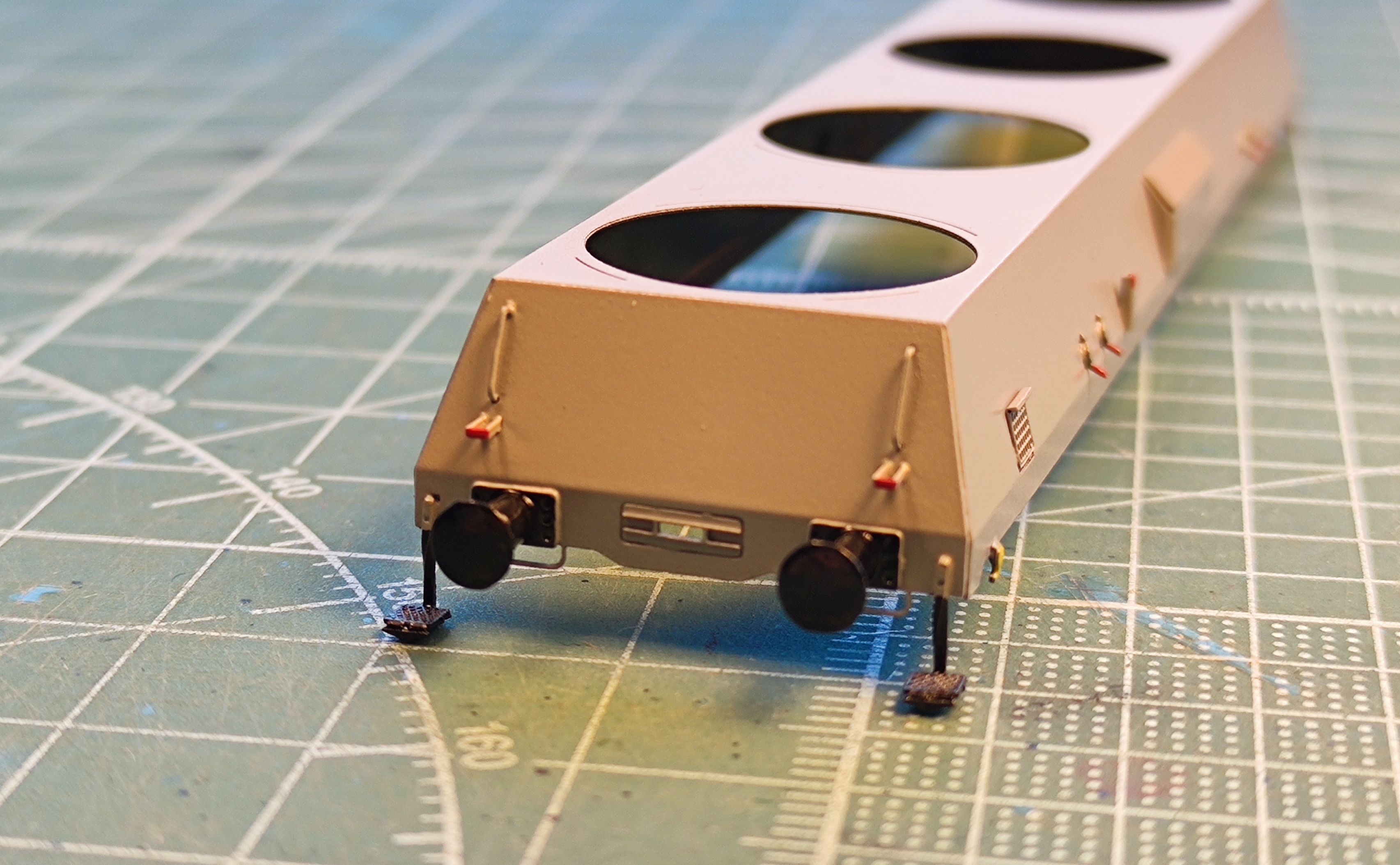 Poręcze główne zbiorników z drucika 0,2mm. W zestawie będą tez fototrawione.