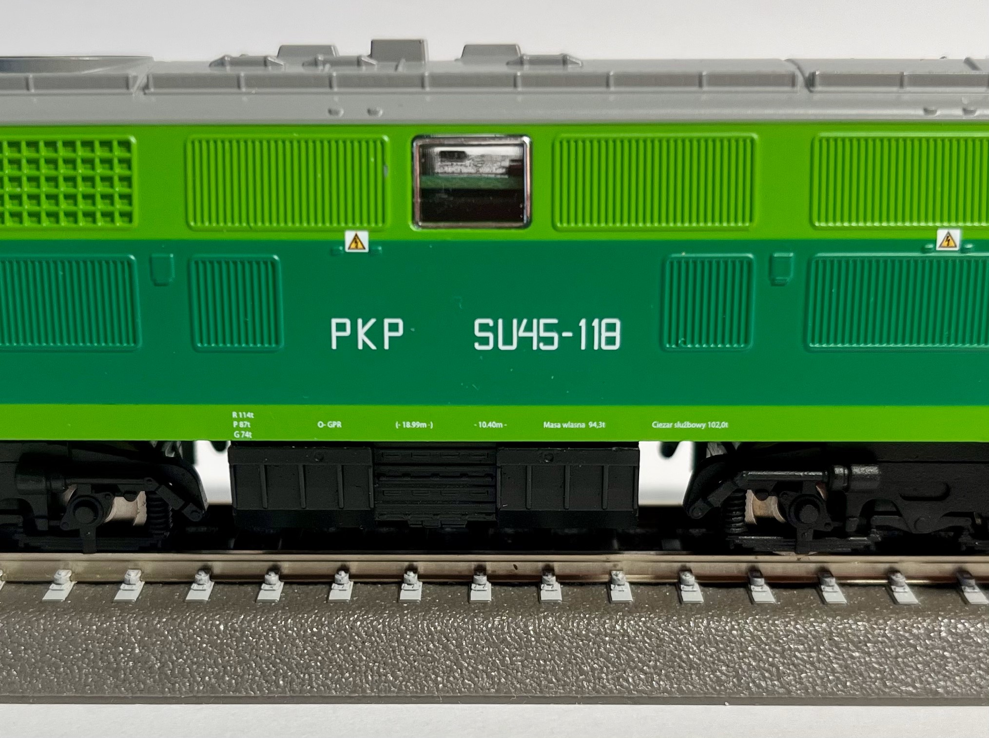 Jak dla mnie fronty lokomotywy nie mają idealnego kształtu, boczne okno otwierane maszynisty powinno chyba być pod większym kątem. Estetycznie natomiast jest to chyba najlepszy model MTB. Malowanie jest ładne i równe, oznaczenia wyglądają ładnie i są czytelne. Lokomotywa pewnie nie jest idealna, widać klej przy barierkach, gdzieś tam przy oknie mam jakieś wgłębienie. Natomiast są ładne wentylatory i siatka nad nimi. Generalnie jak nigdy jestem po zakupie modelu MTB zadowolony, jest naprawdę przyzwoity. Wymiarowo to nie mam pojęcia, planów nie mam.