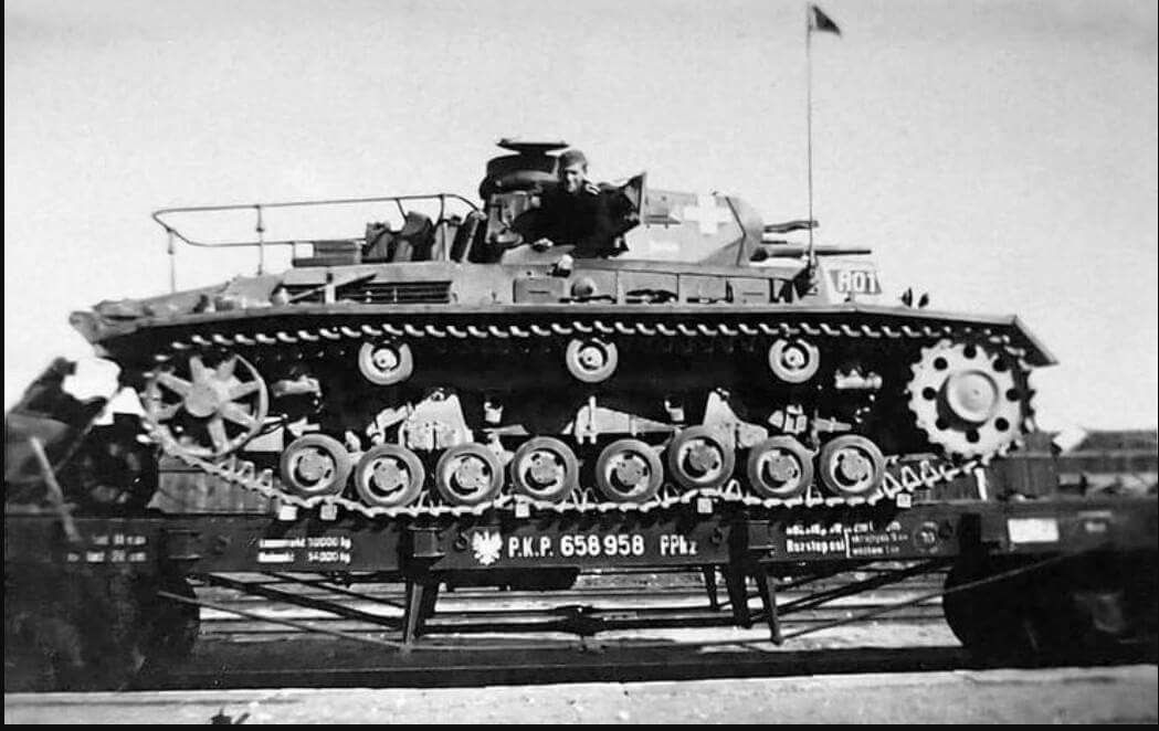 Zdjęcie przedstawia czołg Pz.Bef.Wg.III Ausf.D (dowodzenia) 5 pułku pancernego 3 dywizji pancernej Wehrmachtu po kampanii wrześniowej. Jeszcze nie zdążyli przemalować oznaczeń na wagonie.