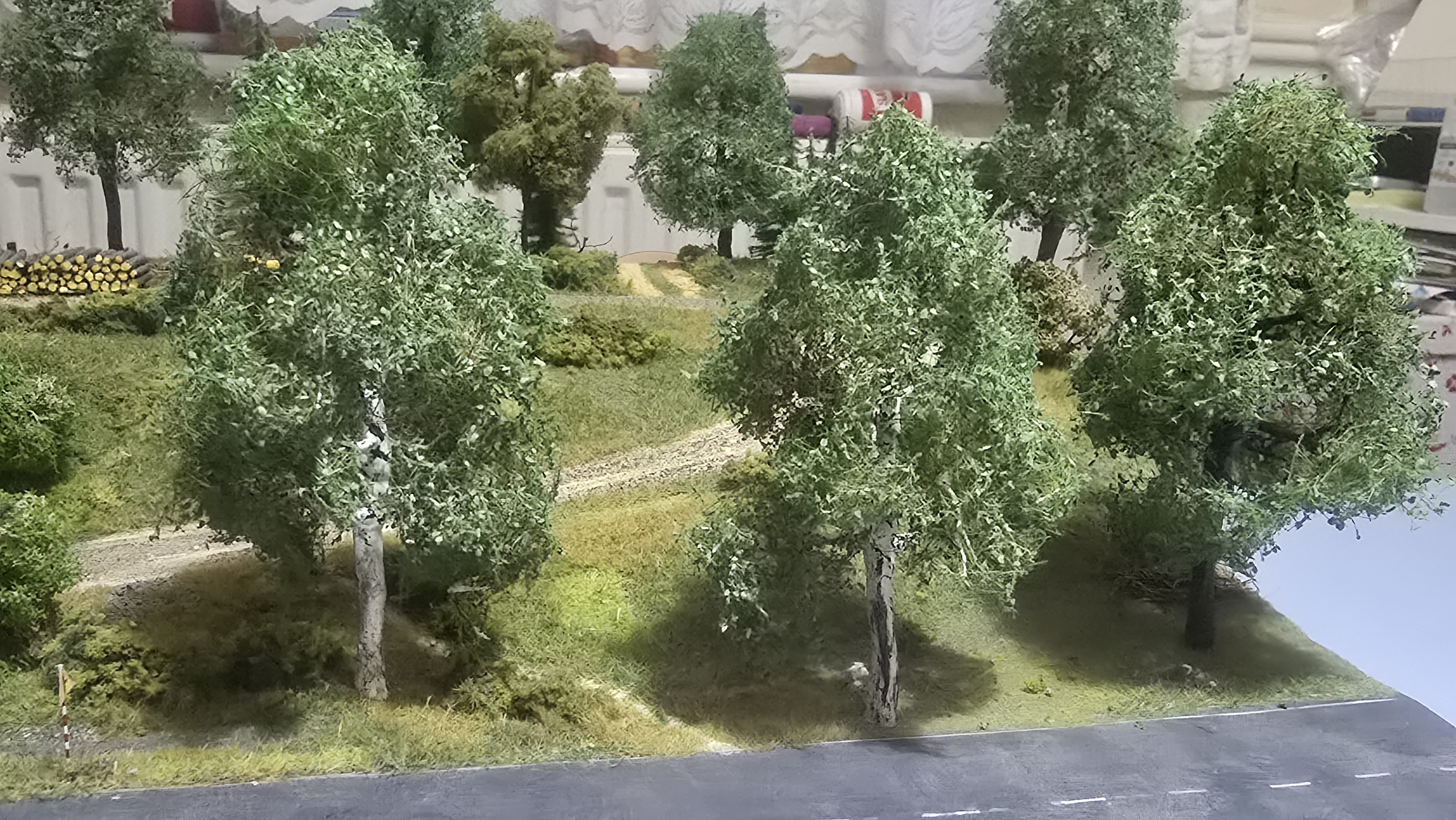 Coś się ruszyło na mojej malej dioramce, powymieniałem drzewa na bardziej realistyczne. Zaczyna to jako tako wyglądać.