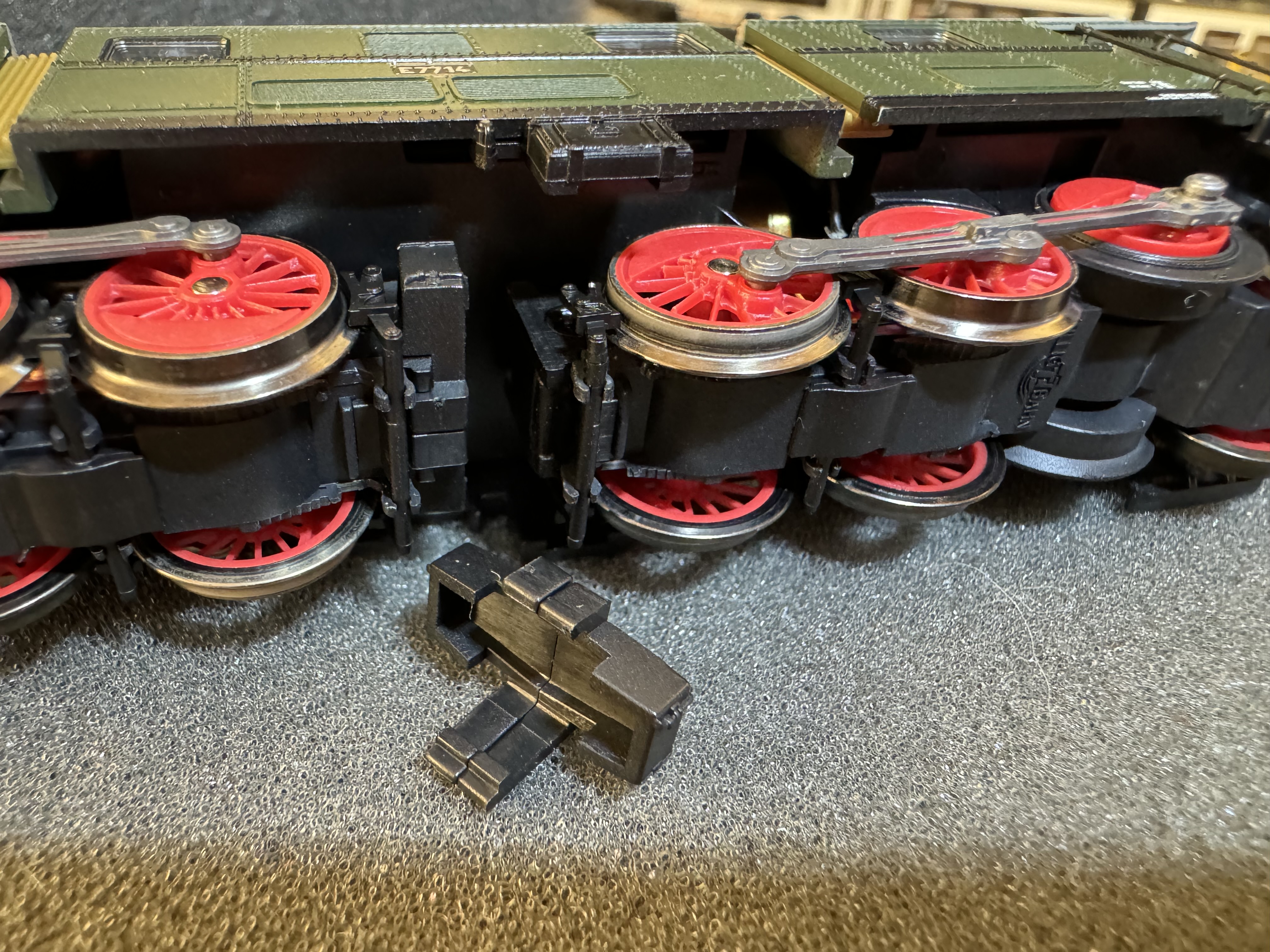 Wczoraj przyjechała najnowsza E77 14 (96402) i w pięknie zapakowanym pudełku otrzymałem lokomotywę która chyba komuś… spadła na stół: