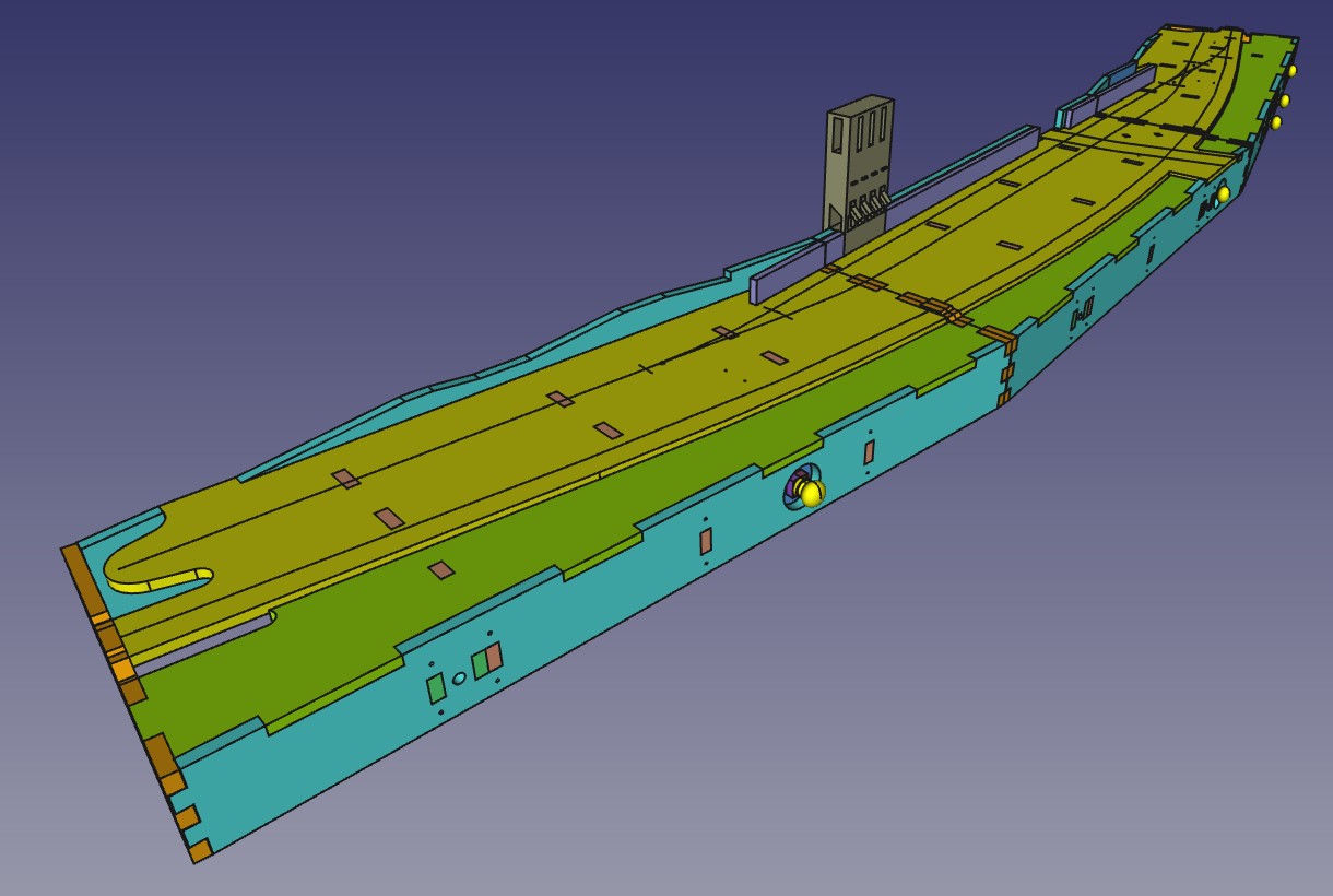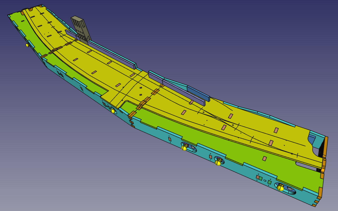Obecnie zakończyłem etap projektowania skrzynek. Będą one wycinane ze sklejki. Ale najpierw, w celu weryfiacji poprawności projektu, złożyłem całość w programie 3D. Poniżej zamieszczam kilka wizualizacji: