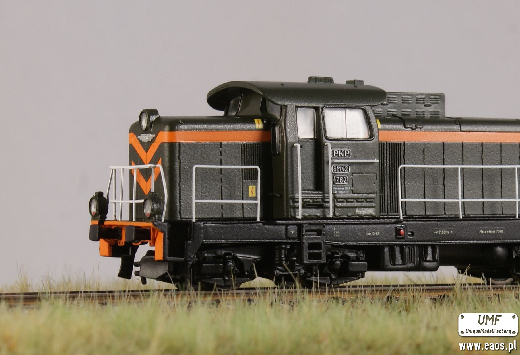 SM42-782 TT Południowa DOKP Lok. Nowy Sącz to kolejna lokomotywa z serii SM42 wykonana na bazie zestawu żywicznego plus metalowe dodatkami od UMF. Podobnie jak w przypadku SP42 w środku znajduje się płytka ze światłami E1, dekoder dźwięku, silnik 5 polowy i napęd na wszystkie osie. Odporne na zginanie barierki, odbłyśniki w reflektorach i wiele innych nowinek to rzeczy, które odróżniają nowe modele od znanych już wcześniej półseryjnych SM42 od UMF.