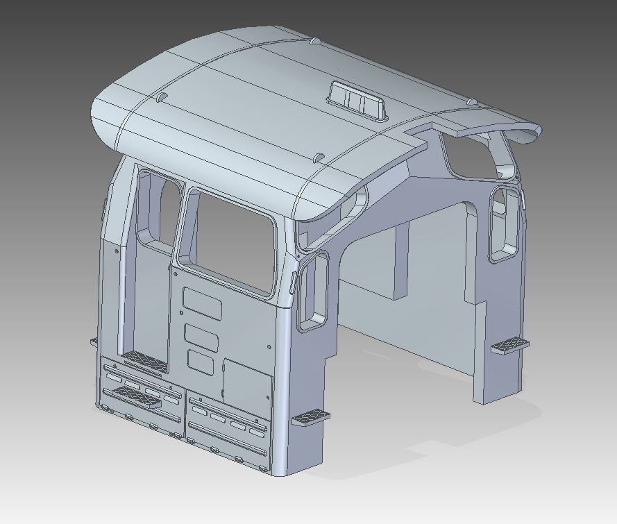 Nowa budka już z 3D ma to tego nie miała wersja odlewana z żywicy. Przygotowaliśmy miejsca na montaż trąbek, wycieraczek szyb. Dach też zyskał nowe detale.