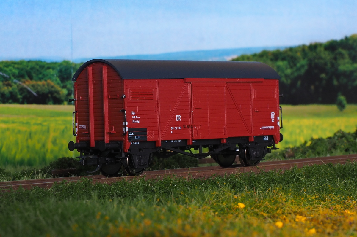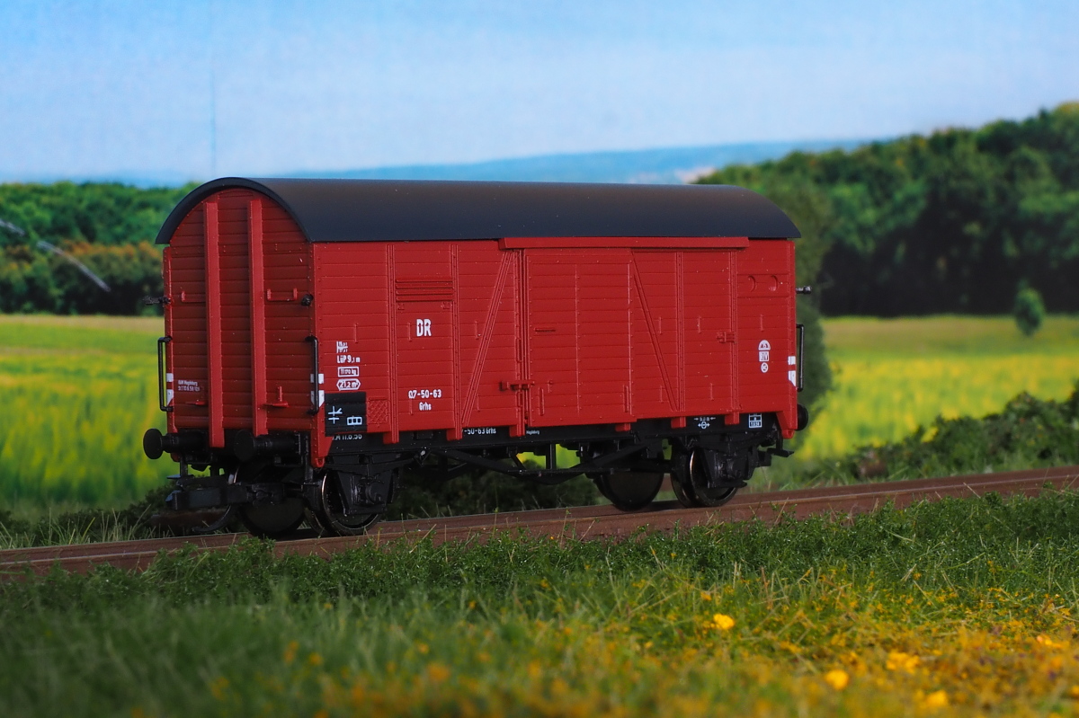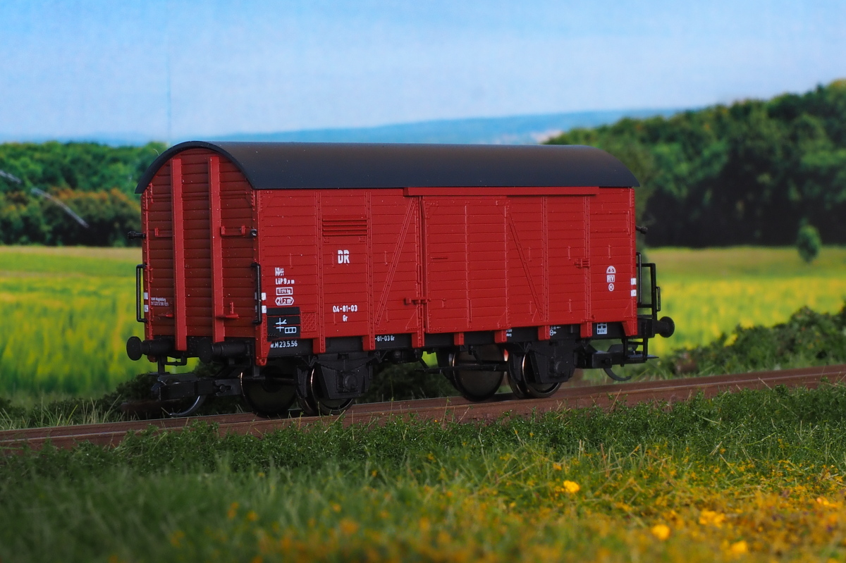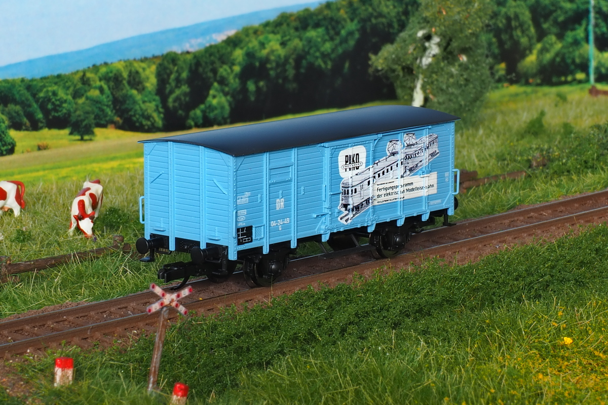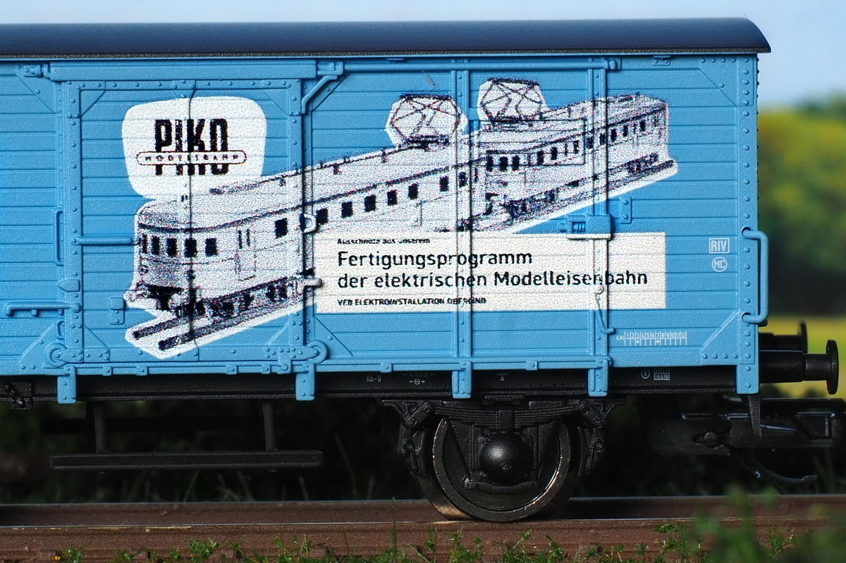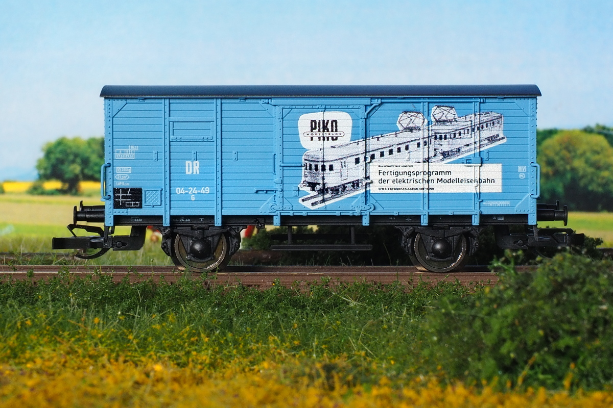 wagon kryty G02 "PIKO" wydany z okazji 75-lecia PIKO (DR, epoka III, nr kat.: 47777)
