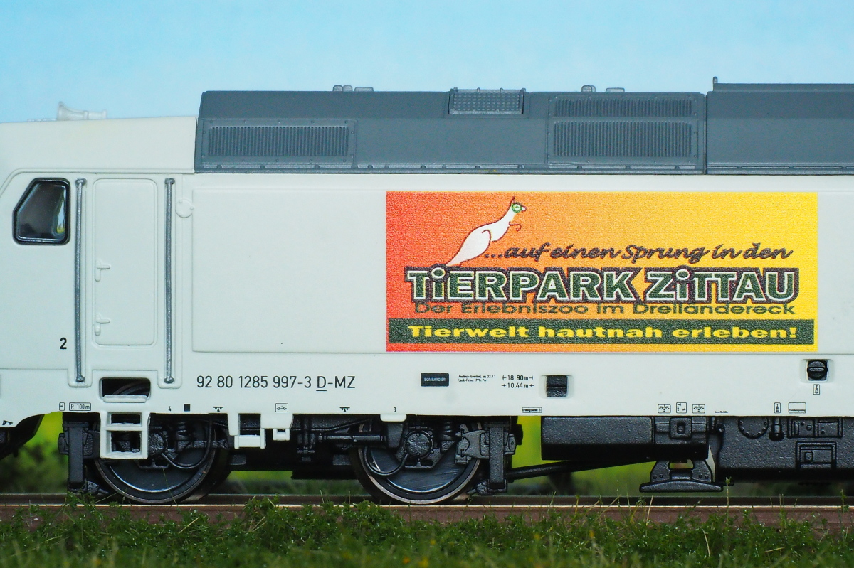 Jeszcze w listopadzie przybyła do mnie kolejna lokomotywa, jaką jest BR285 997-3 w barwach Mein ZOO (Tillig nr kat. 04849)
