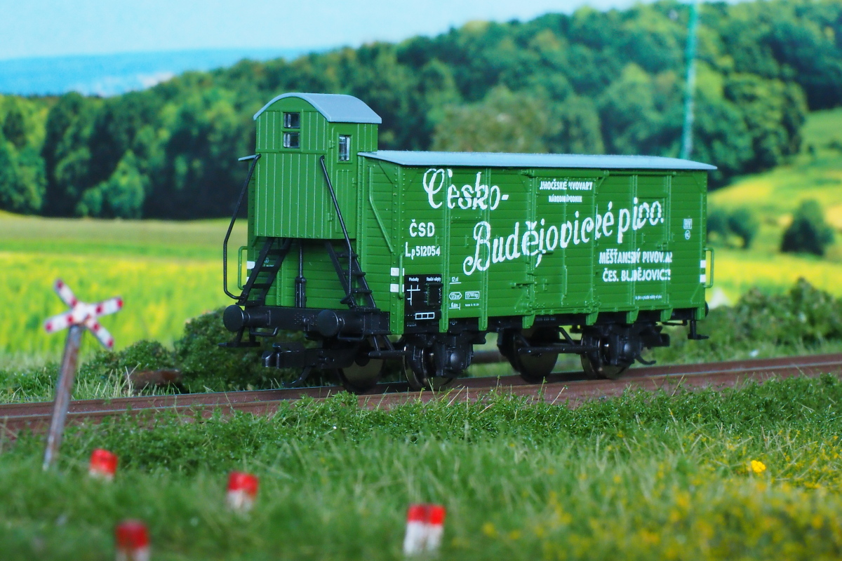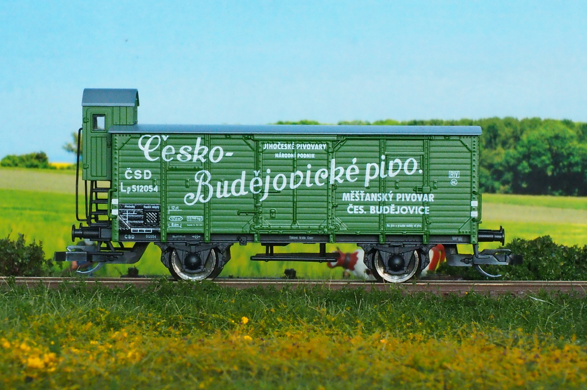 wagon kryty typu G02 z budką hamulcową w barwach "Česko-Budějovické pivo" (ČSD, epoka III, PIKO nr kat.: 47778)