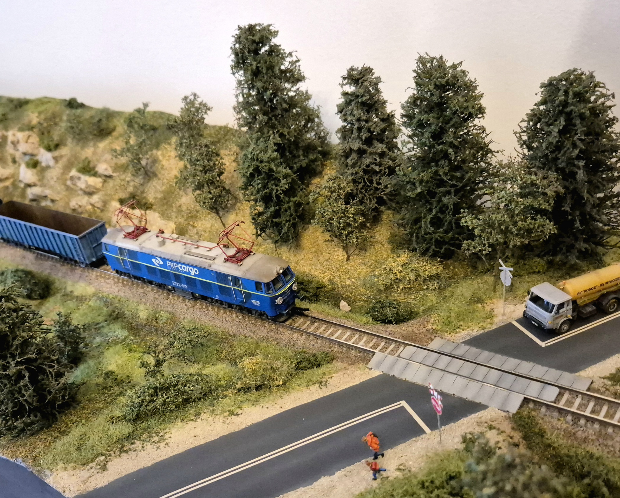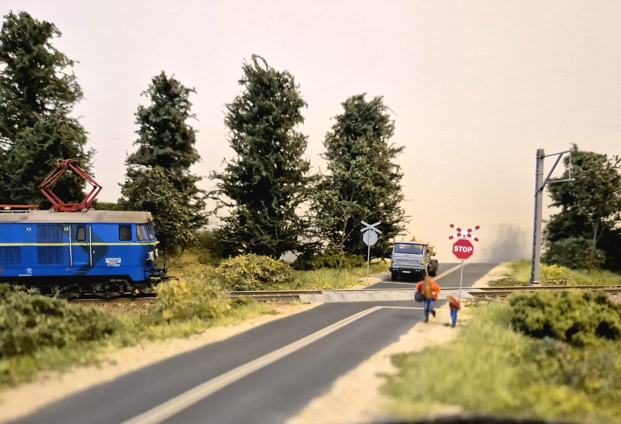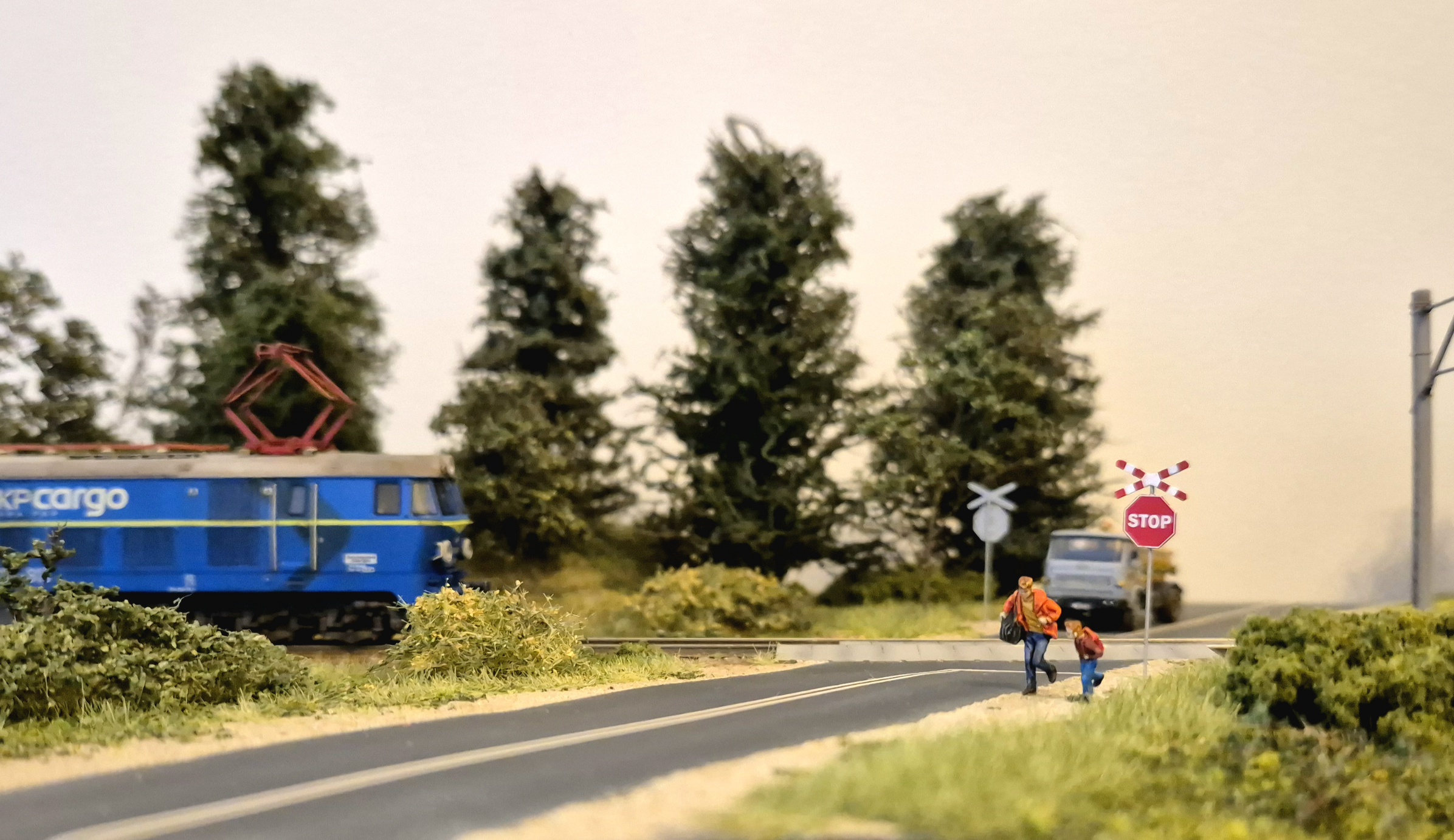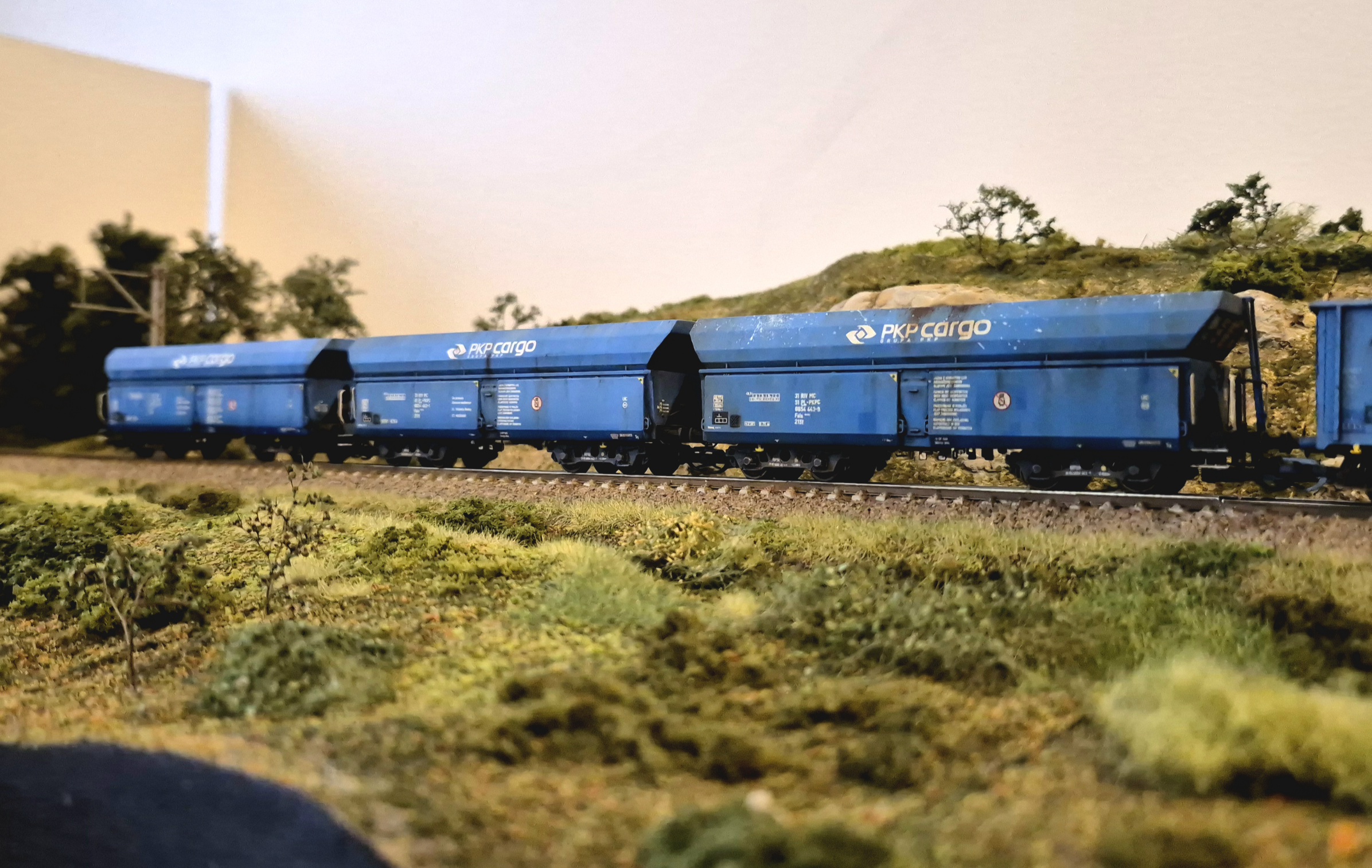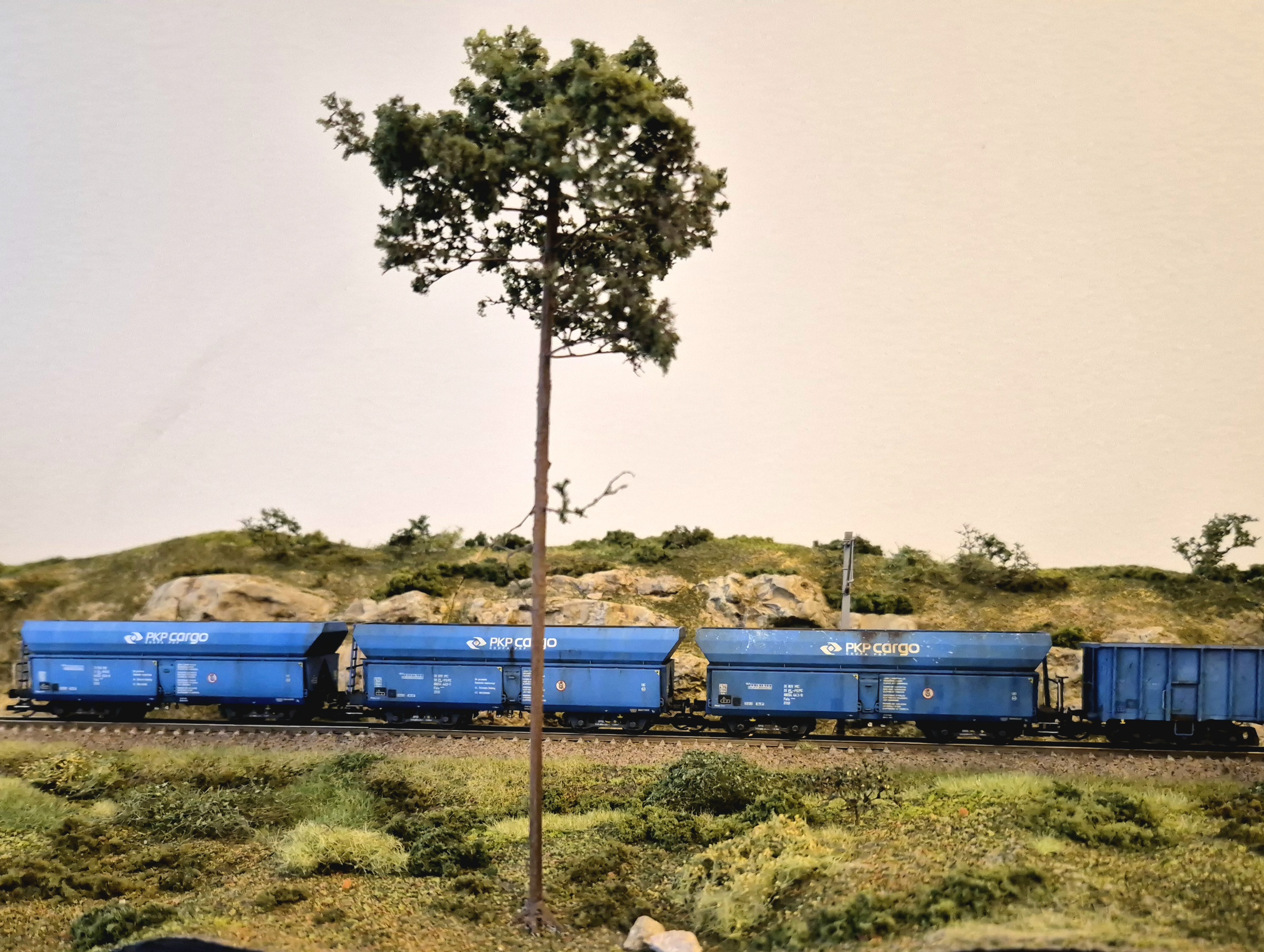 Moduł wzbogaciłem o nowe drzewa i krzewy. Mam też demontowalne słupy trakcyjne ze sklepu microcity.pl. Słupy fajne, ale prawie wszystkie wysięgniki połamały mi się przy wycinaniu z podpór, natomiast skleiłem je i pomalowałem. Wyglądają spoko, szkoda, że nie ma ich nadal dostępnych w microcity :/ Liczyłem, że kupię coś co będzie dostępne na wymianę w razie czego.