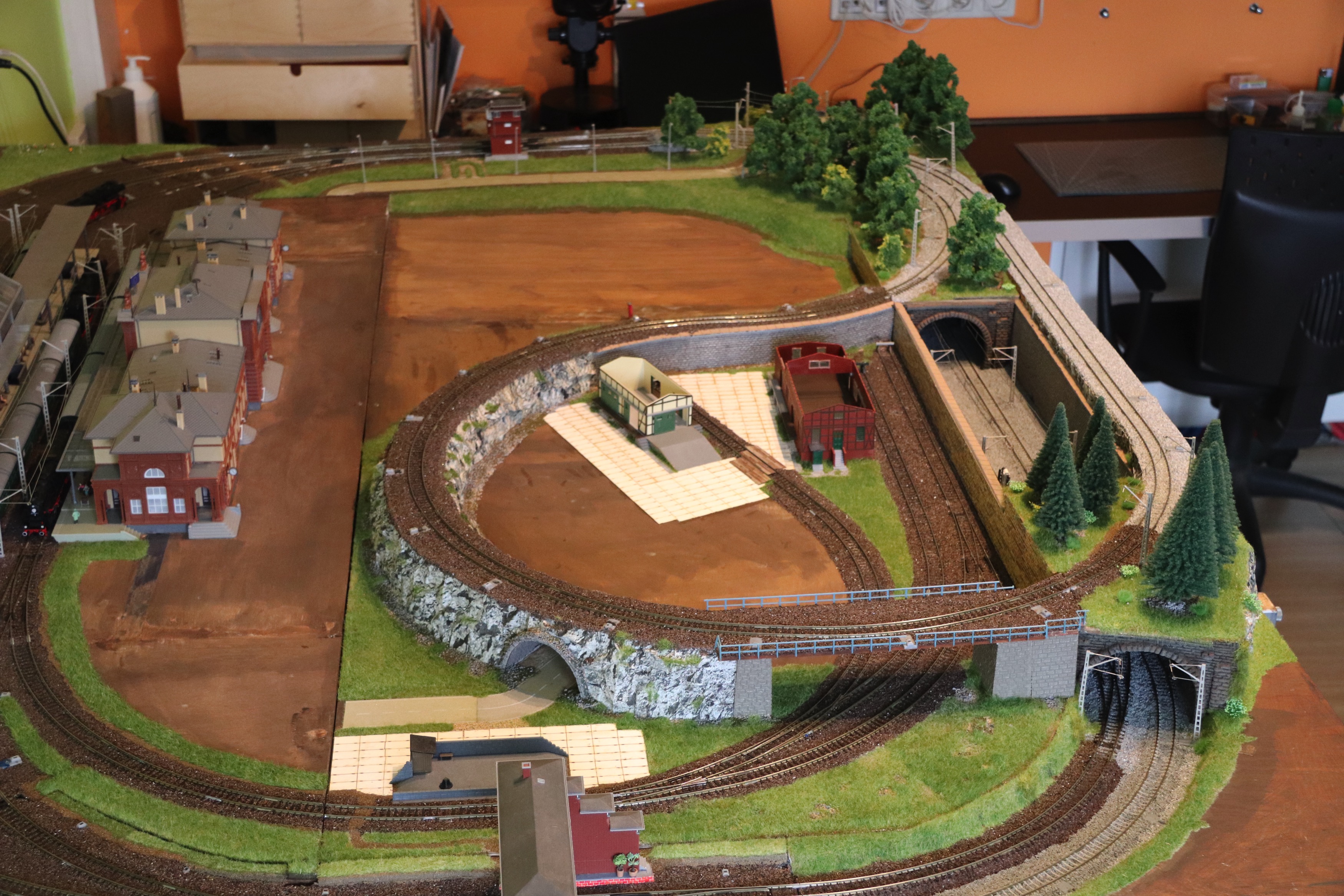 Czas kończyć z wizerunkiem samej sklejki, więc wziąłem się za tunel i to co dookoła niego. Na pierwszy ogień, pętle górna do przerobienia. Czekam jeszcze na most, ale to za moment.