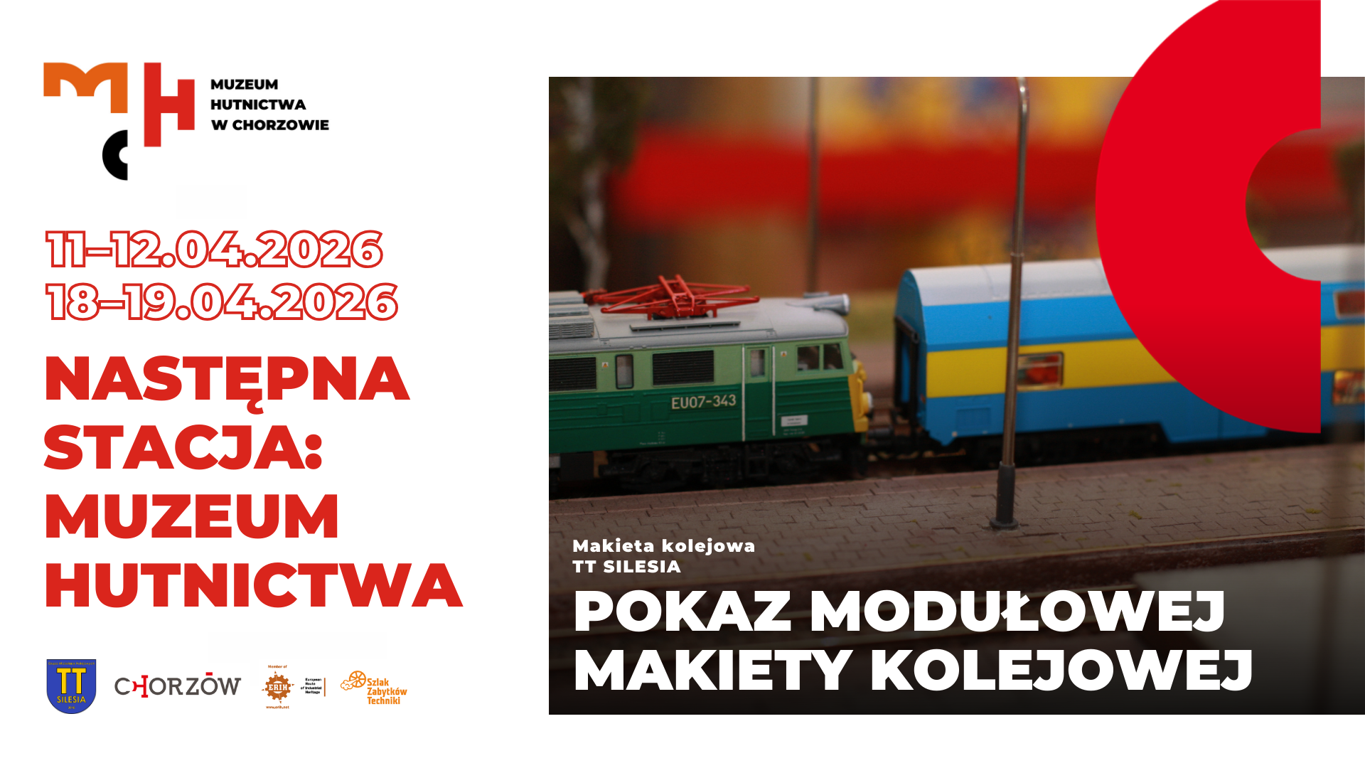 W dwa kwietniowe weekendy 2026 roku zaprezentujemy naszą makietę modułową TT SILESIA (wraz z gośćmi) w skali 1:120 wielkość TT w Muzeum Hutnictwa w Chorzowie.