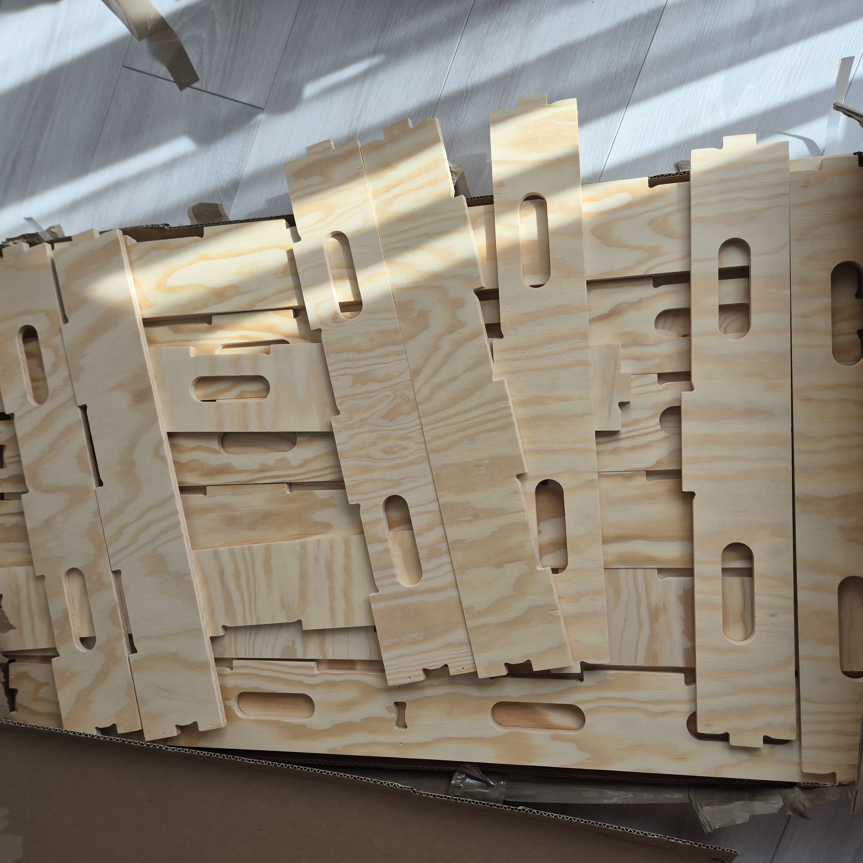 Co do konieczności obróbki, to jest ona prawie zawsze konieczna, nawet gdy zamawiasz elementy cięte laserowo. Sklejka nigdy nie ma dokładnie 10mm, więc pióra wpustów są abo lekko za ciasne, albo za luźne. Nie licują się też idealnie z bokiem modułu. Zawsze konieczna jest więc jakaś drobna obróbka, szlifowanie i/lub szpachlowanie boków.