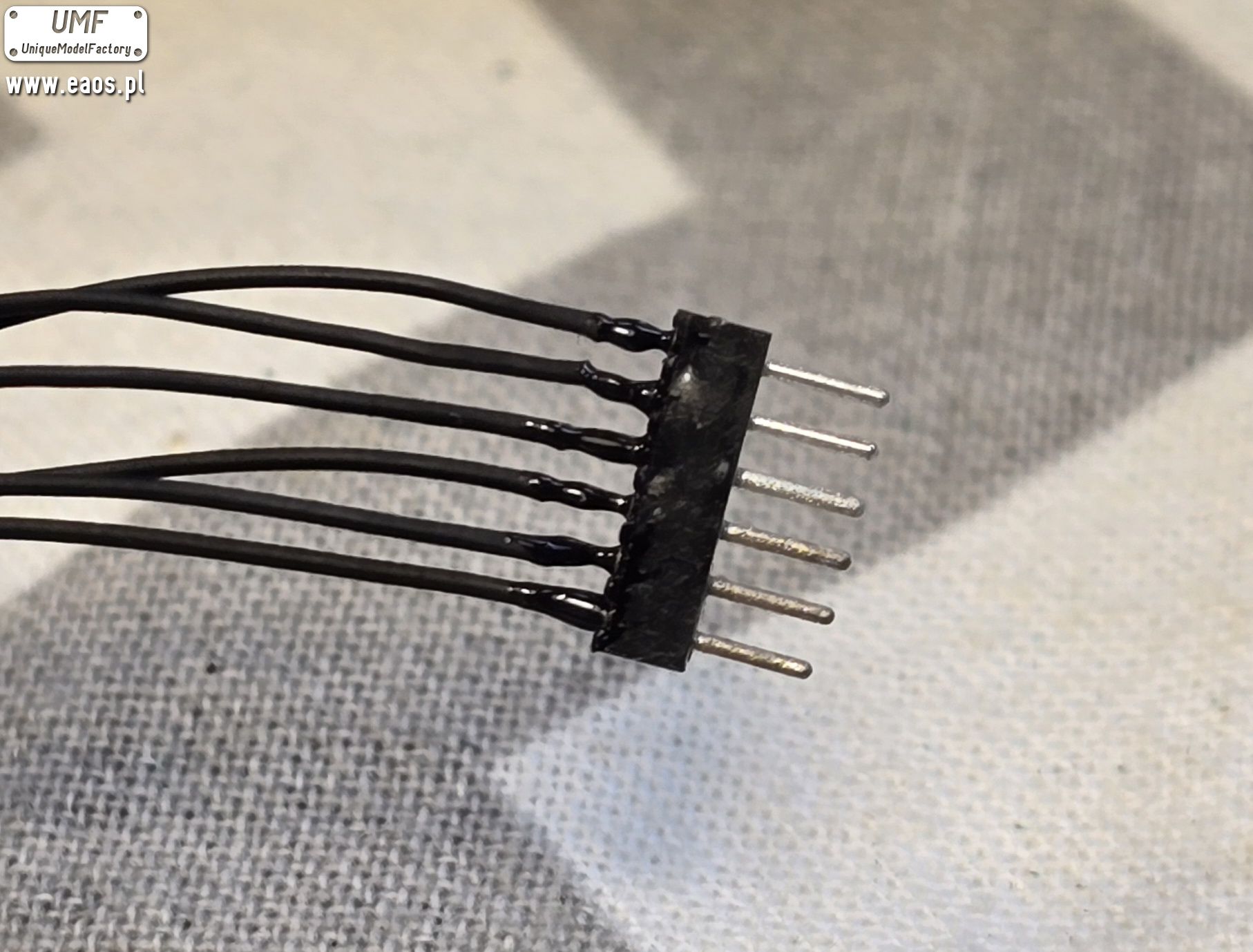 Po lutowaniu zamalowuję luty na czarno. Takie 6 pinowe połączenie zepnie ze sobą elektrycznie parowóz i tender.